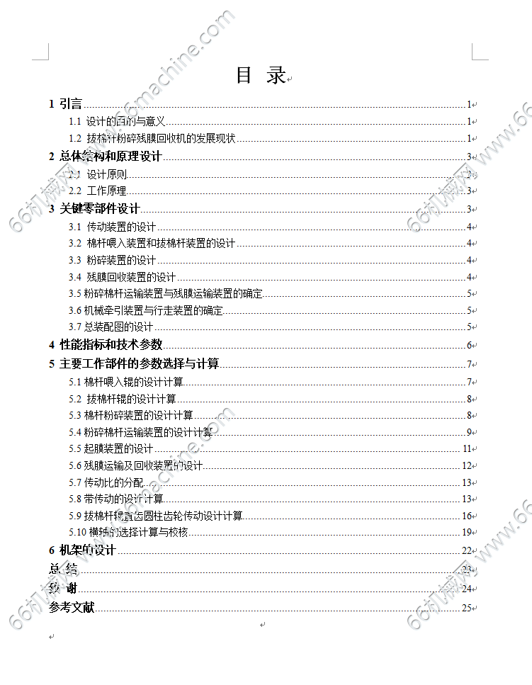 【全套优秀毕设资料:含论文(约1.2w字)+CAD详图+3D源文件+建模仿真动画,仅供参考学习之用!】 摘要:新疆现普遍应用宽膜植棉技术,每年新产生约10万吨残膜。残膜遗留在田间不能及时回收将造成土壤及环境的严重污染。同时秋后田间大量秸秆对残膜回收影响较大,若机械直接回收残膜,其中混合着秸秆等杂物太多,残膜箱在较短时间就会盛满,影响作业效率,因此,收获后回收残膜必须先将秸秆与待收残膜分离,以减少地面秸秆对机收残膜的影响。而棉秆资源作为一种重要的生物质能源,在我国产量巨大,将其单独回收也能带来一定效益。本文通过分析目前国内外拔棉杆粉碎残膜回收联合机,针对新疆的实际情况,对现有的拔棉杆粉碎残膜回收联合机进行一定改变,设计了新的机型。介绍了拔棉杆粉碎残膜回收联合机的工作原理及其结构,还对其传动关系、棉杆粉碎还田、残膜回收起膜机构进行了分析说明,并对整个过程进行了总结。 关键字:拔棉杆;棉杆粉碎;残膜回收;联合作业机