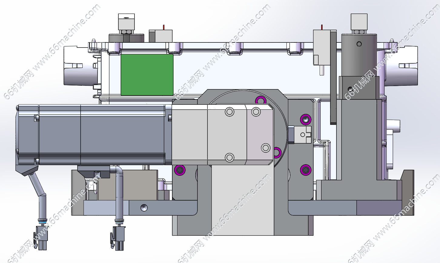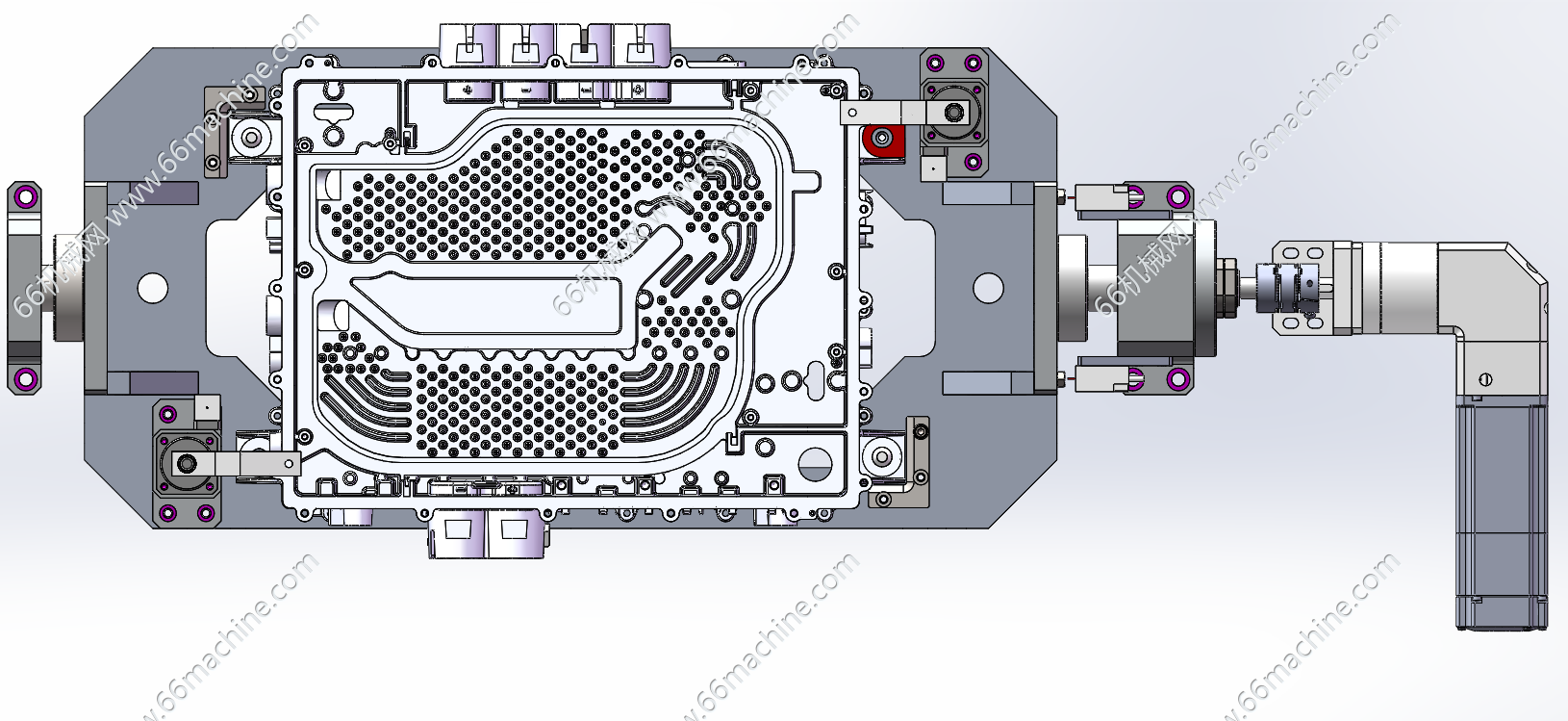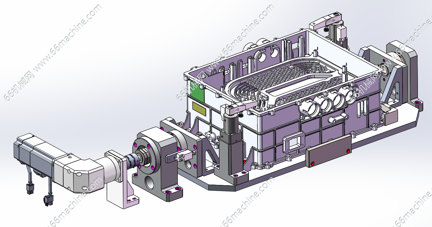 本模型为大型缸体翻转夹具(变位机、翻转工装),采用电机驱动旋转,气动夹紧。该夹具主要用于新能源汽车领域如电池包壳体、电机壳体等大型精密箱体类零件的加工或检测作业。
