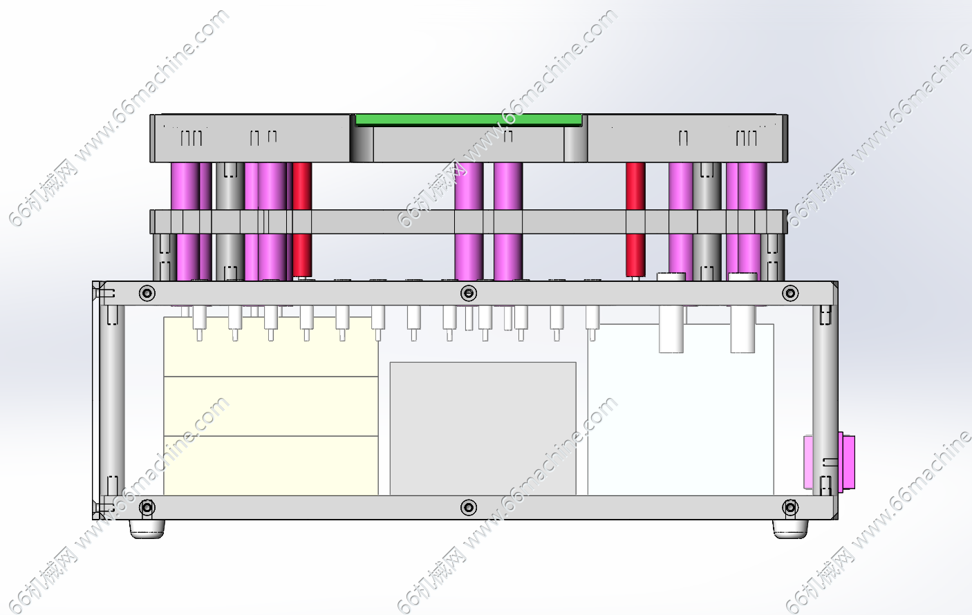 开始运行,操作人员把铁框放置在治具里面,当2个工作接近开关感应到时延时1秒开始工作,12个检测合格灯都亮时为OK(其中一个不亮时治具报警),铁框检测ok完成,操作人员把铁框拿走,接着放入下一铁框,依次循环。【模拟量接近开关说明:线性接近传感器是一种属于金属感应的线性器件,接通电源后,在传感器的感应面将产生一个交变磁场,当金属物体接近此感应面时,金属中则产生涡流而吸取了振荡器的能量,使振荡器输出幅度线性衰减,然后根据衰减量的变化来完成无接触检测物体的目的。该接近传感器具有无滑动触点,工作时不受灰尘等非金属因素的影响,并且低功耗,长寿命,可使用在各种恶劣条件下。线性传感器主要应用在自动化装备生产线对模拟量的智能控制】,本模型用于专用工件检测,是学习和参考的典型模型,为你的产品设计思路助力,可供大家探讨学习!