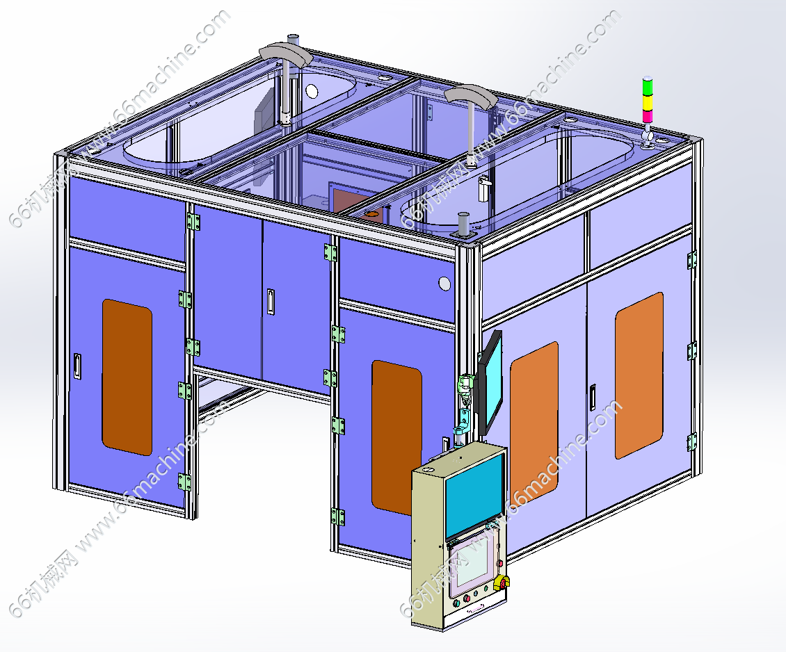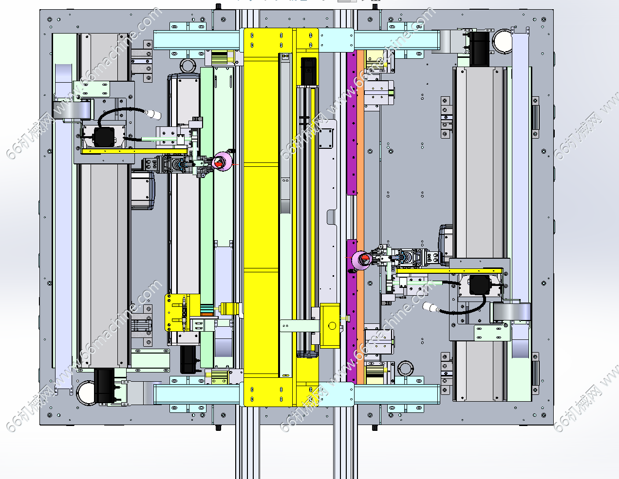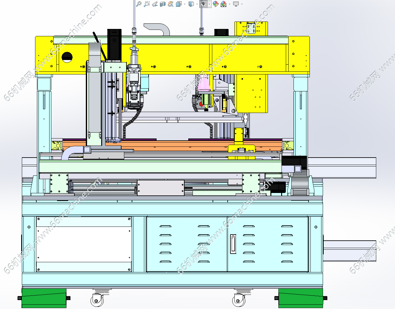 本模型为某企业矩形管件双头激光焊接机,主要由下机架、机罩、2组三轴激光焊接模组及矩形管件压紧移动模组等组成,用于矩形管件的焊接作业,可供大家参考!
