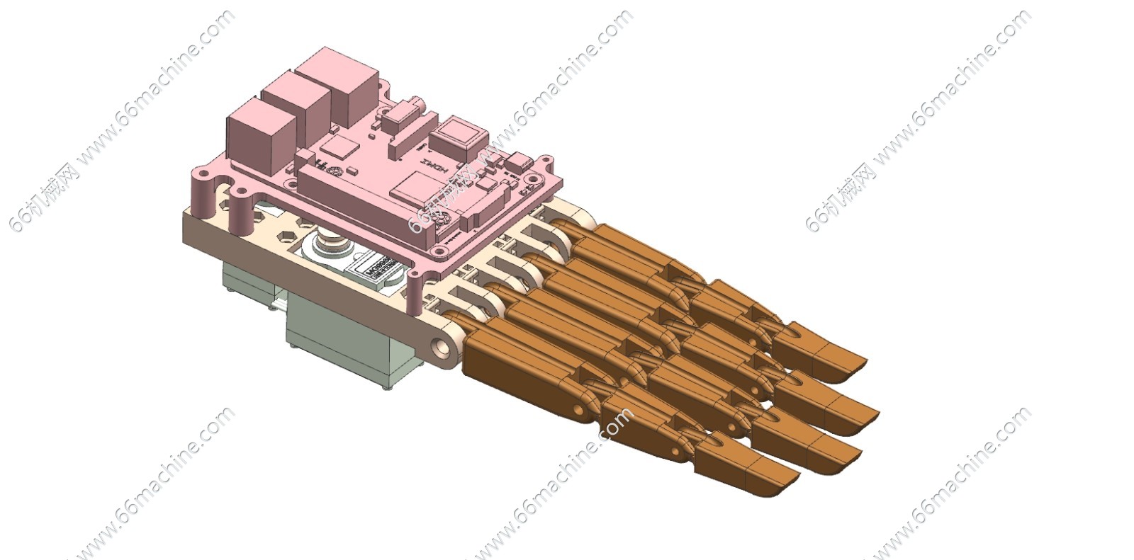 联动手指机械手通过合金材料打造,并通过机械原理的连杆结构实现助力动作,通过该机械手可以完成人手不能完成的工作,通过人手的操作指令可以完成相应复杂的动作