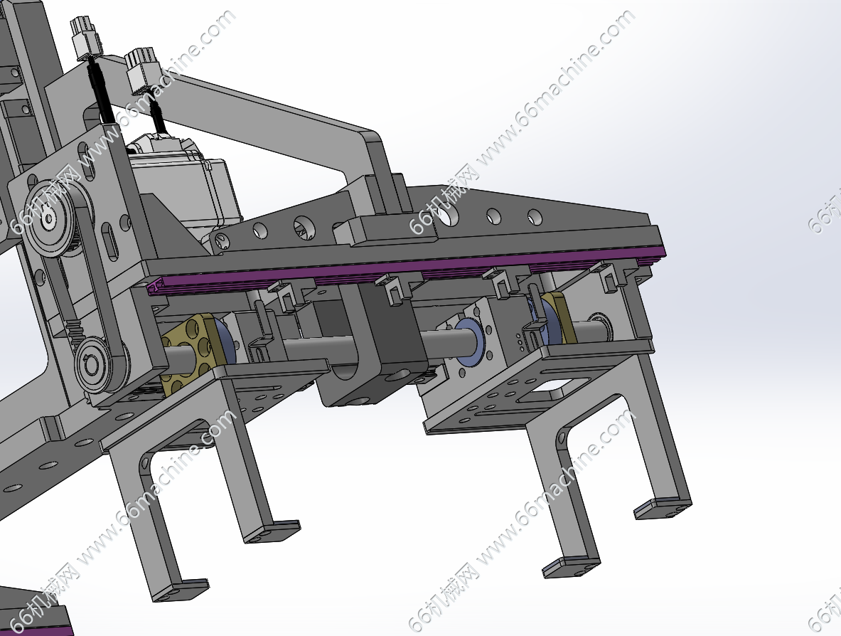本模型为基于正反丝杠的夹爪机构,是一种利用单根丝杠上加工有左旋和右旋两段螺纹(即正反丝杠),将电机的一个旋转运动转换为两个夹爪的同步、相向直线运动的机械装置。其核心特点是能够确保两个夹爪始终关于中心线对称移动,实现精准的对中夹持。