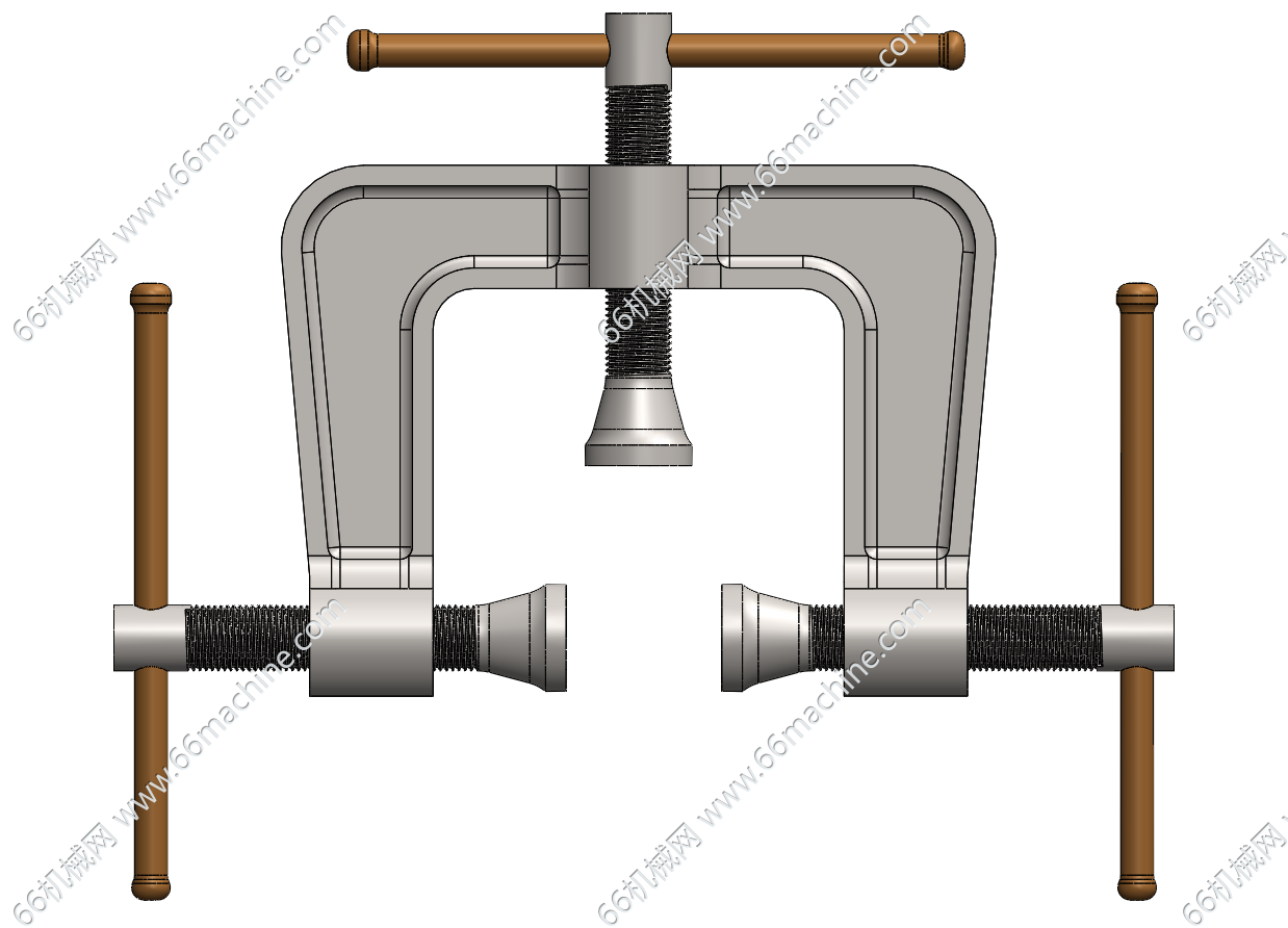 本模型为三向C型夹钳,又称三向边缘夹或三点C夹,是一种可从三个方向施加夹紧力的C形夹具,核心优势是能稳定固定工件边缘或拼接处,常用于金属加工等对定位精度与夹持稳定性要求高的场景。