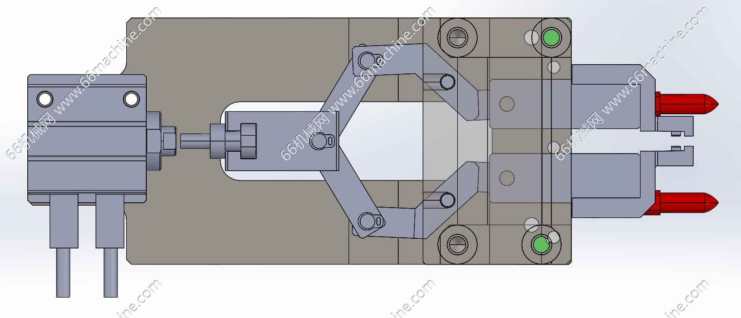 本机构是一种以气缸为动力源,通过内置的连杆机构将活塞的直线运动转换为两个或多个夹爪同步、精确的夹紧与松开运动的自动化夹持装置。其核心目标是为自动化系统提供一个具有力放大和机械自锁能力、结构坚固、寿命长的强力夹持解决方案。