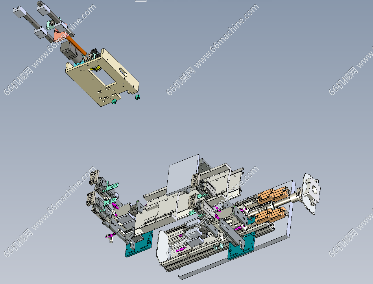 本模型为单模组双滑台同动叠加机构(即双滑块夹持模组),采用同轨道模组双滑台同动机构,可进行自由高度调节并可实现叠加平台。本模型建模精巧,可供大家探讨学习!