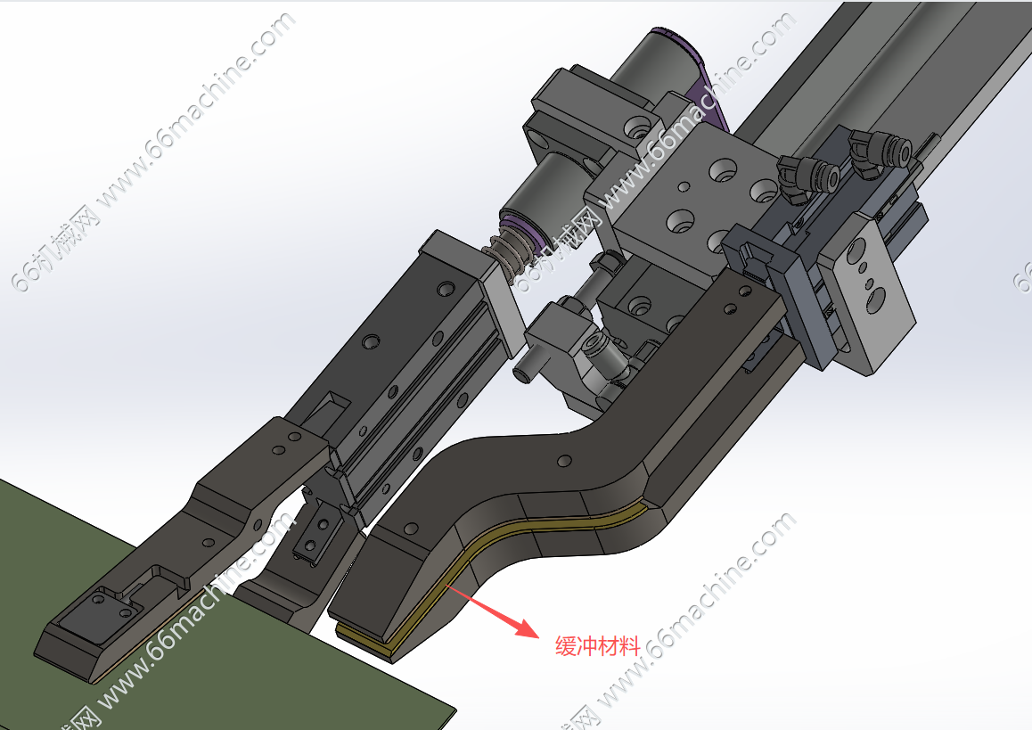 本机构是一种专为夹取软包装锂离子电池电芯而设计的自动化夹具。其核心特征是集成了主动或被动式的缓冲与力控制机制,以确保在抓取、搬运和放置过程中,对柔软、易变形、表面脆弱的软包电芯施加均匀、可控且安全的夹持力,避免造成电芯外观损伤、内部极片移位或密封边泄露。