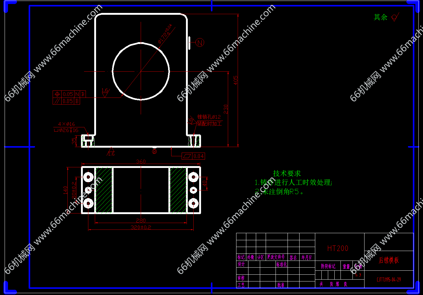 摘 要: 本次设计的课题是S195柴油机机体三面粗镗组合机床及夹具设计。本设计主要针对原有的S195机体左、右、后三个面上13个孔多工序加工、生产率低、位置精度误差大的问题而设计的,从而保证孔的位置精度、提高生产效率,降低工人劳动强度。夹具部分的设计,首先,在完成对组合机床的总体设计并绘制出“三图一卡”的基础上,绘制夹具设计的装配图;夹具设计是组合机床设计中的重要部分,夹具设计的合理与否,直接影响到被加工零件的加工精度等参数。首先确定工件的定位方式,然后进行误差分析,确定夹紧方式,夹紧力的计算,对夹具的主要零件进行结构设计。在夹具设计中,设计的主要思路是把原有的手动夹紧改为液压夹紧方式,这样设计主要优点是:液压油油压高、传动力大,在产生同样原始作用力的情况下,液压缸的结构尺寸比气压小了许多,液压油的不可压缩性可使夹具刚度高,工作平稳、可靠,液压传动噪声小,劳动条件比气压的好。解决了手动夹紧时夹紧力不一致、误差大、精度低、工人劳动强度大等缺点。 关键词:组合机床 误差分析 导向装置 夹具设计