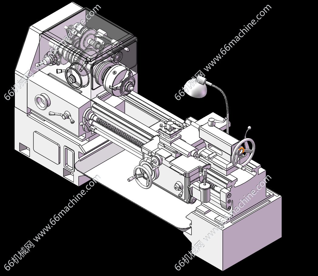 本模型为CA6140卧式车床,是卧式普通车床的典型型号,主要用于金属切削加工,可完成车削、钻孔等多种工序。其结构以硬轨为主,稳定性较好,适用于中小型零件的批量或单件生产。