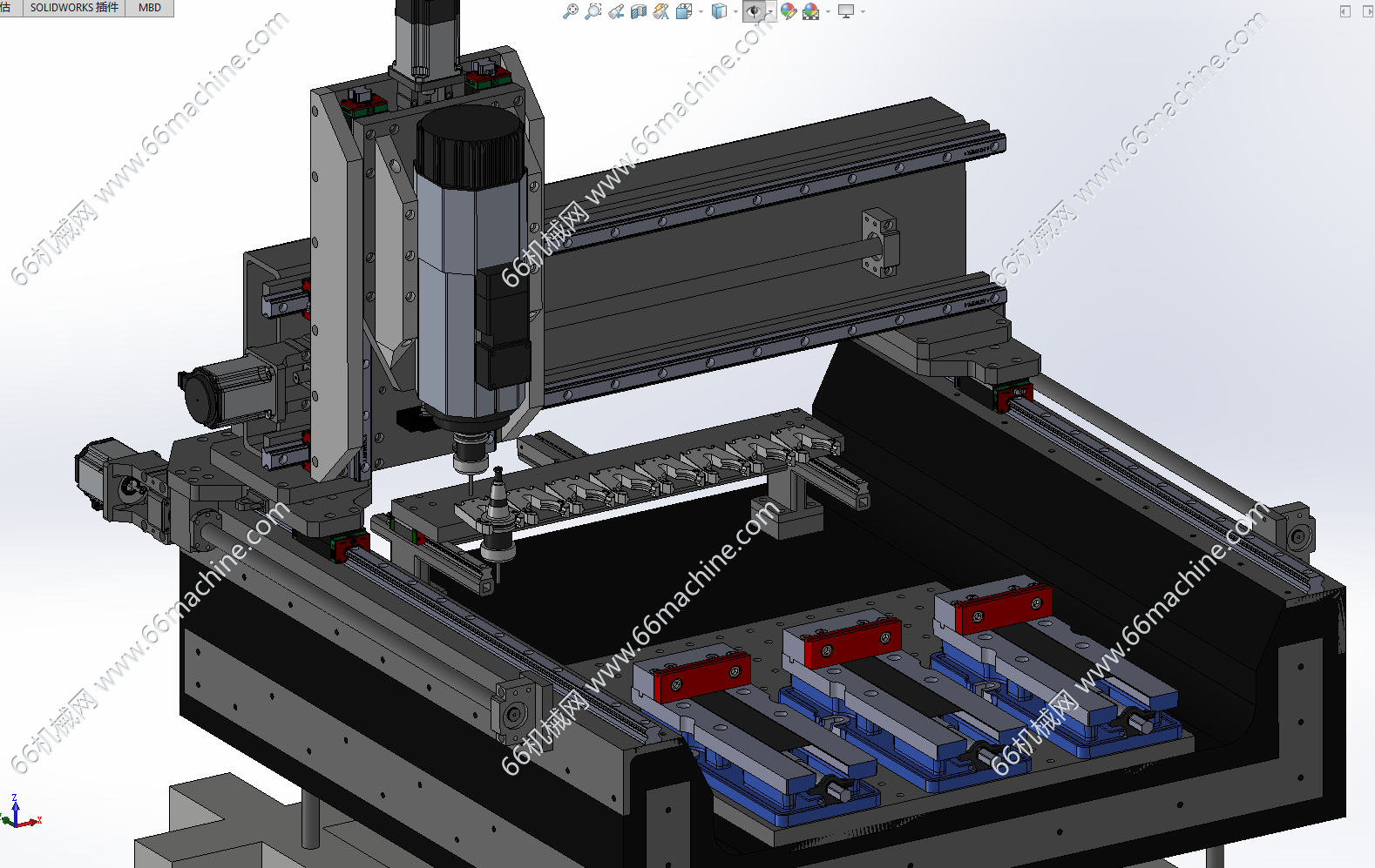 本模型为CNC三轴铣床,三轴均采用伺服丝杠模组,工作范围:28英寸(X轴)× 28英寸(Y轴)× 11英寸(Z轴),配备8工位刀库,最大刀具尺寸(直径2英寸),立柱高度约5英寸,欢迎参考!
