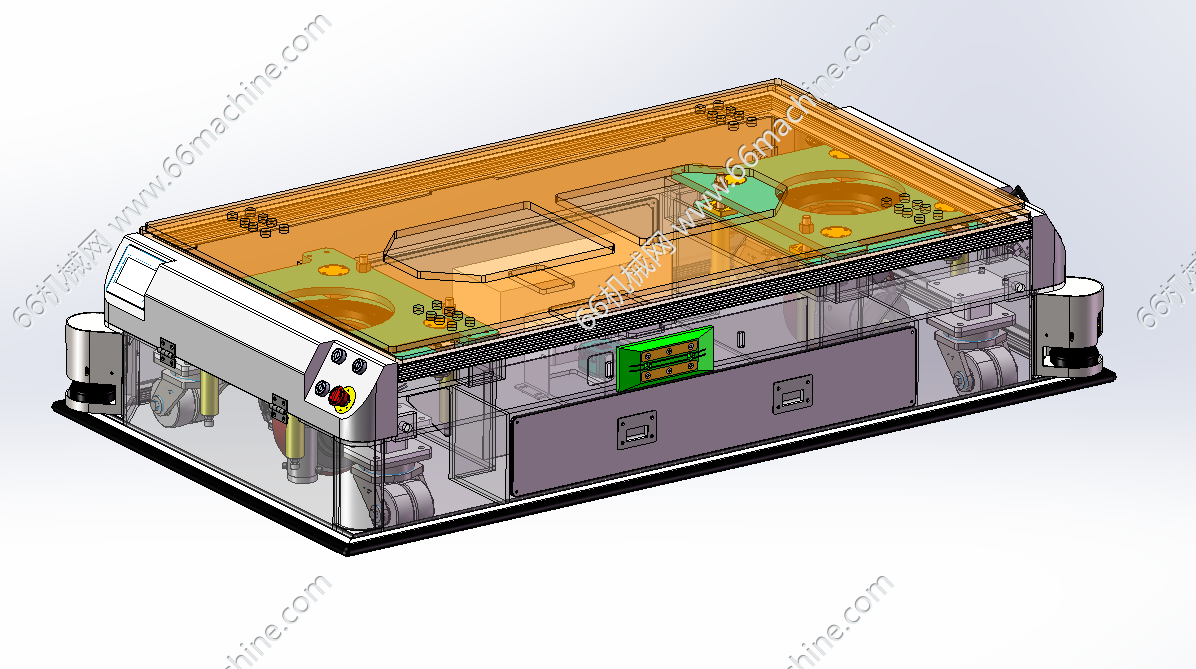 本模型为基于AGV的加工中心货梯上下料工作站,主要由货梯、潜伏顶升式AGV车、龙门吸取移送机、加工设备等组成,AGV是自动导引运输车(Automated Guided Vehicle)的缩写,它是一种无人驾驶的运输设备,具有自动导航、搬运、定位、避障等功能。AGV通常采用激光、视觉、电磁等导航方式,可以在复杂的环境中自主行驶,完成各种运输。