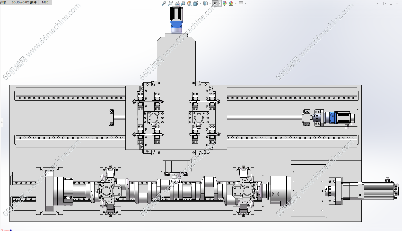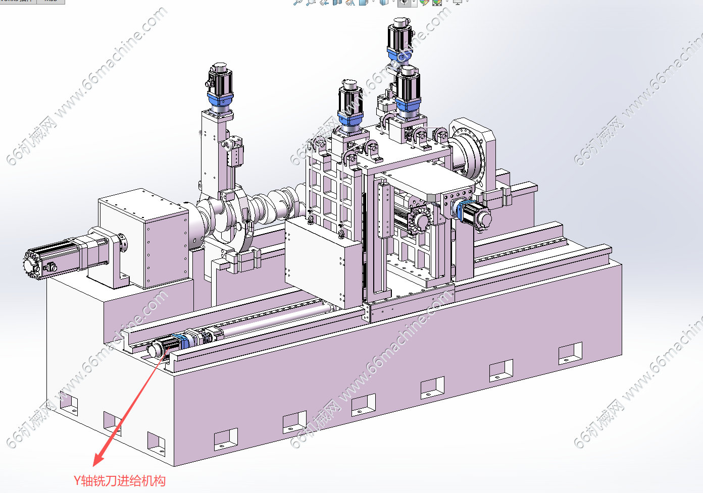 本模型为某企业V16发动机曲轴外缘车铣机床,采用车铣复合形式加工外缘,工件由电机带动旋转,刀具系统可实现X、Y、Z三个方向进给,从而实现曲轴外缘整体加工。设备采用丝杠配硬轨保证运行平稳个刚性,底座采用铸件提供稳定基础。本模型为专业人员设计,仅供专业技术人员参考学习之用!