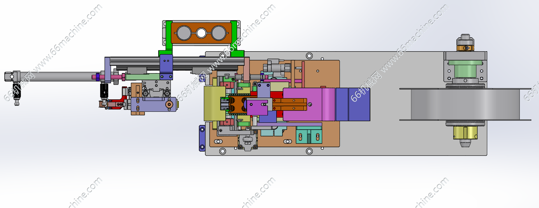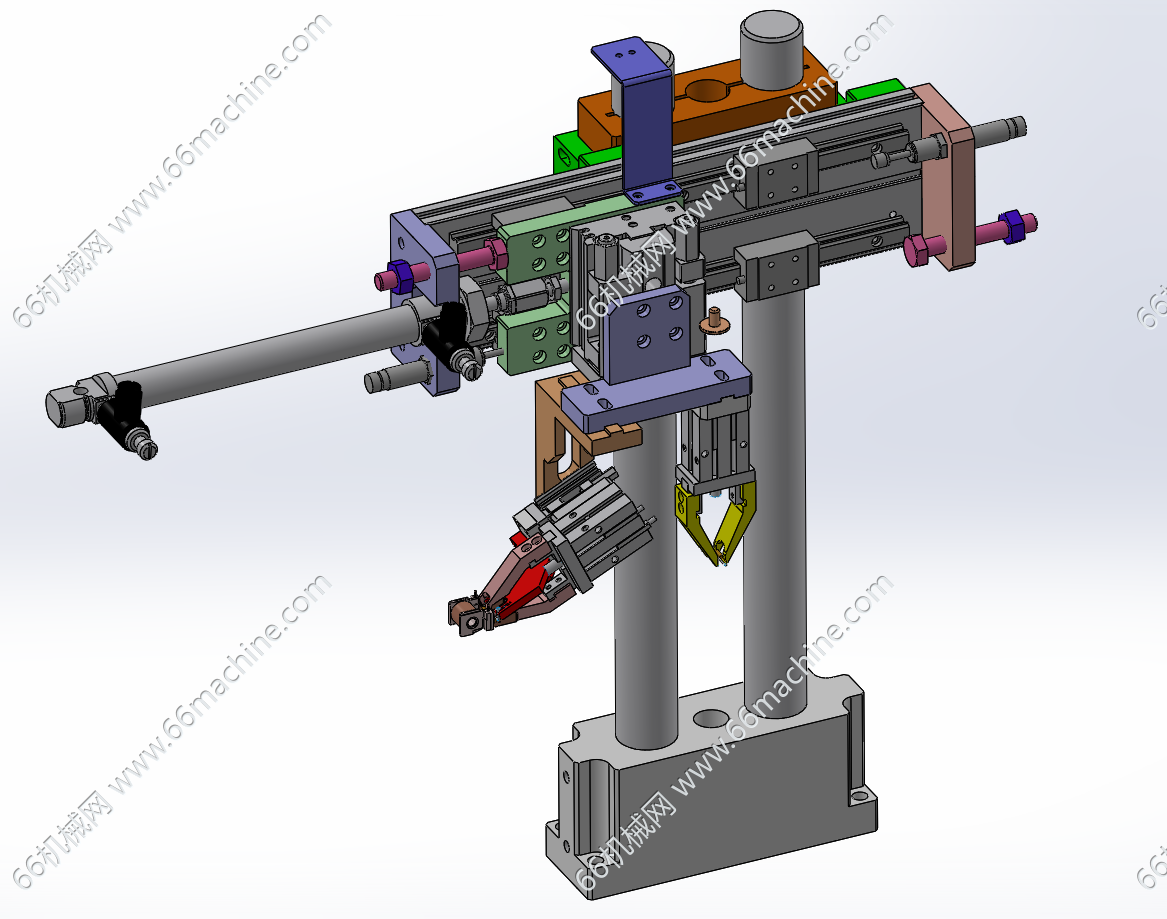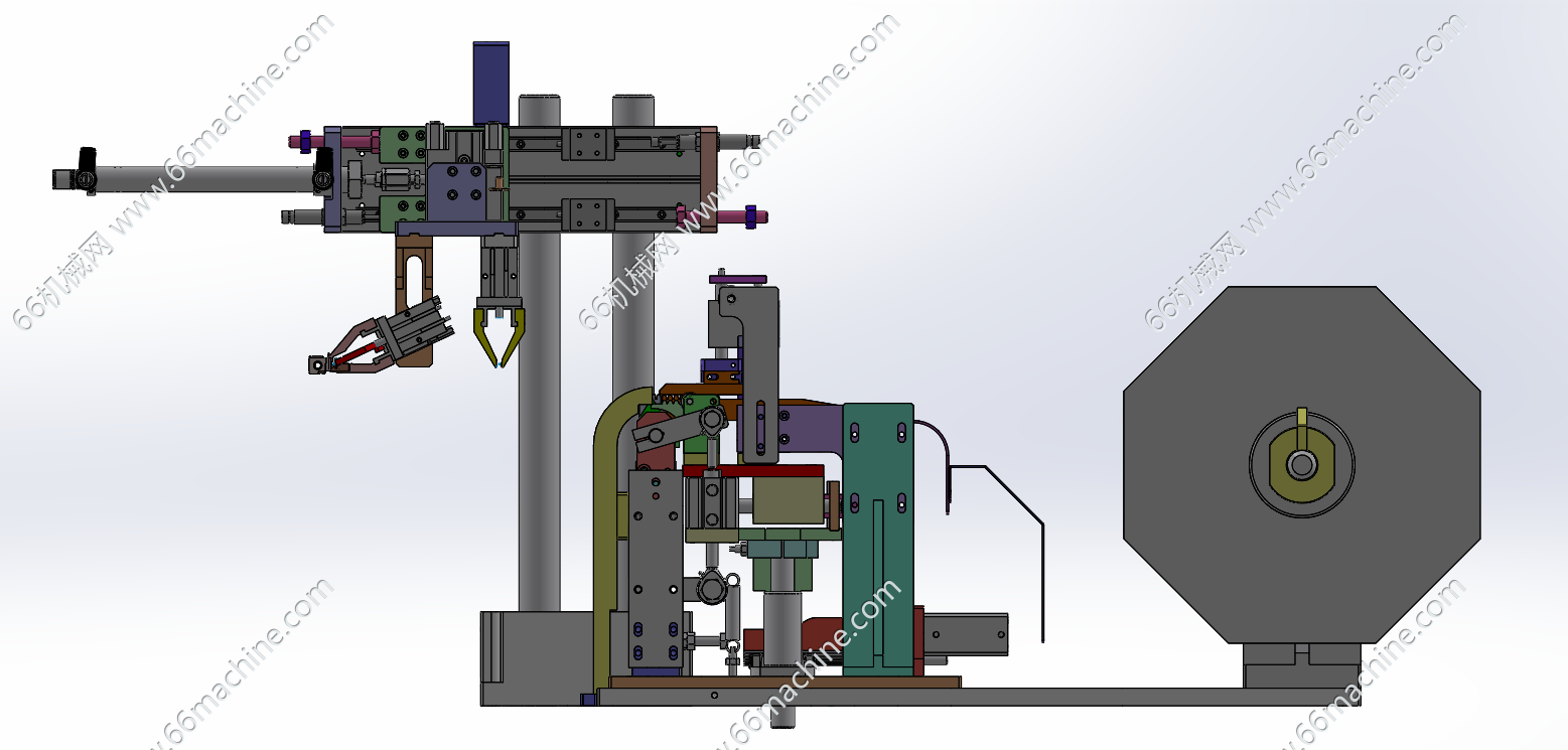 本模型为编带电阻切分及夹取移栽供料机构,主要由编带电阻卷料盘、编带电阻拆分、夹取移栽机构组成,用于将编带电阻进行拆分并送至下工序,实现自动化供料。