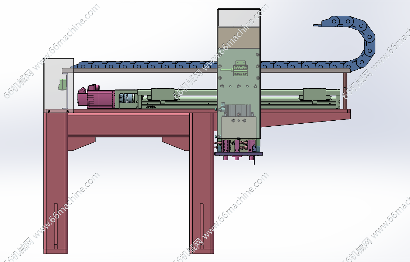 本模型为XZ搬运模组,主要用在棒料加工设备上,完成板料上下左右搬运及旋转。通过电机丝杠xz模组完成转头升降机左右上下运动,通过吸嘴吸取物料,欢迎参考!