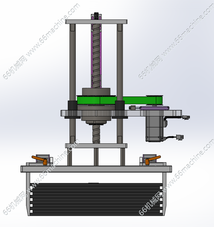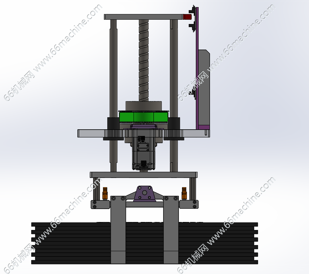 本模型为升降取料机构(夹持机构),是一种利用滚珠丝杠副将电机的旋转运动转换为精确的直线运动,从而实现物料或工具在垂直方向(Z轴)上进行精准升降和定位的自动化机构。它是自动化设备、数控机床和生产线中实现垂直方向精密定位功能的核心模块之一。