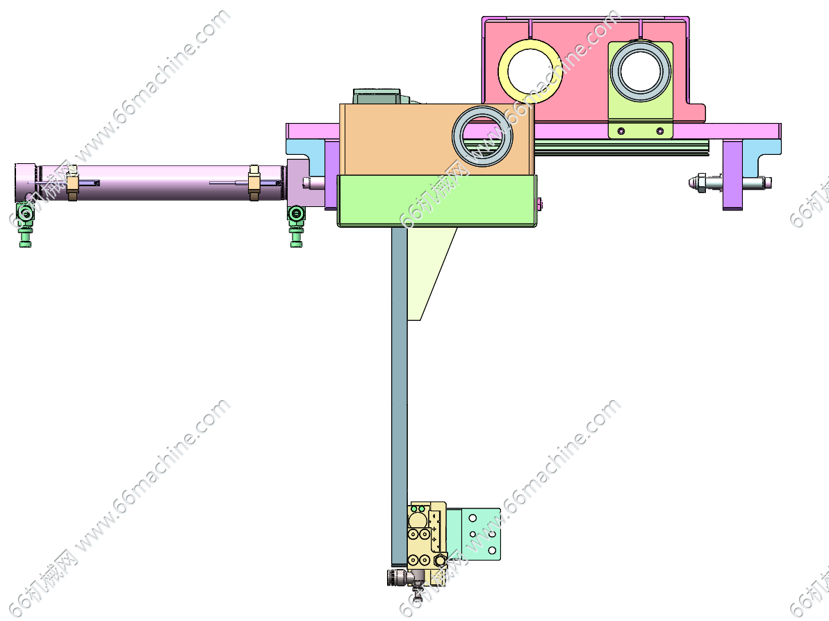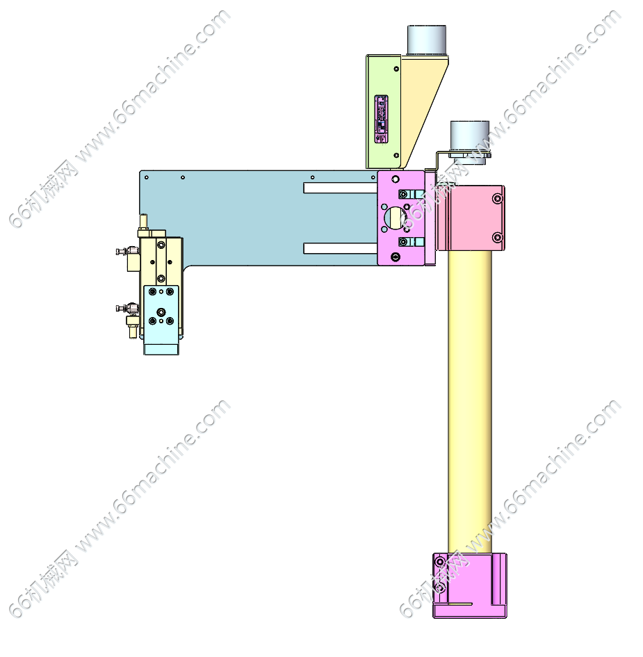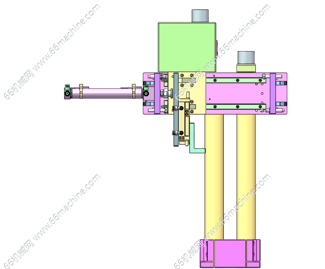 本模型为移栽机构(搬运机构),用于同步搬运两个工件横移的场合,以达到完成工件的上料、下料等动作。末端夹持机构可选用夹爪或吸盘(未图示),是很常见的非标自动化搬运机构。