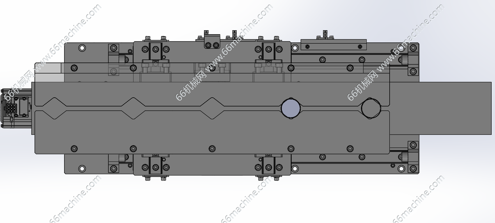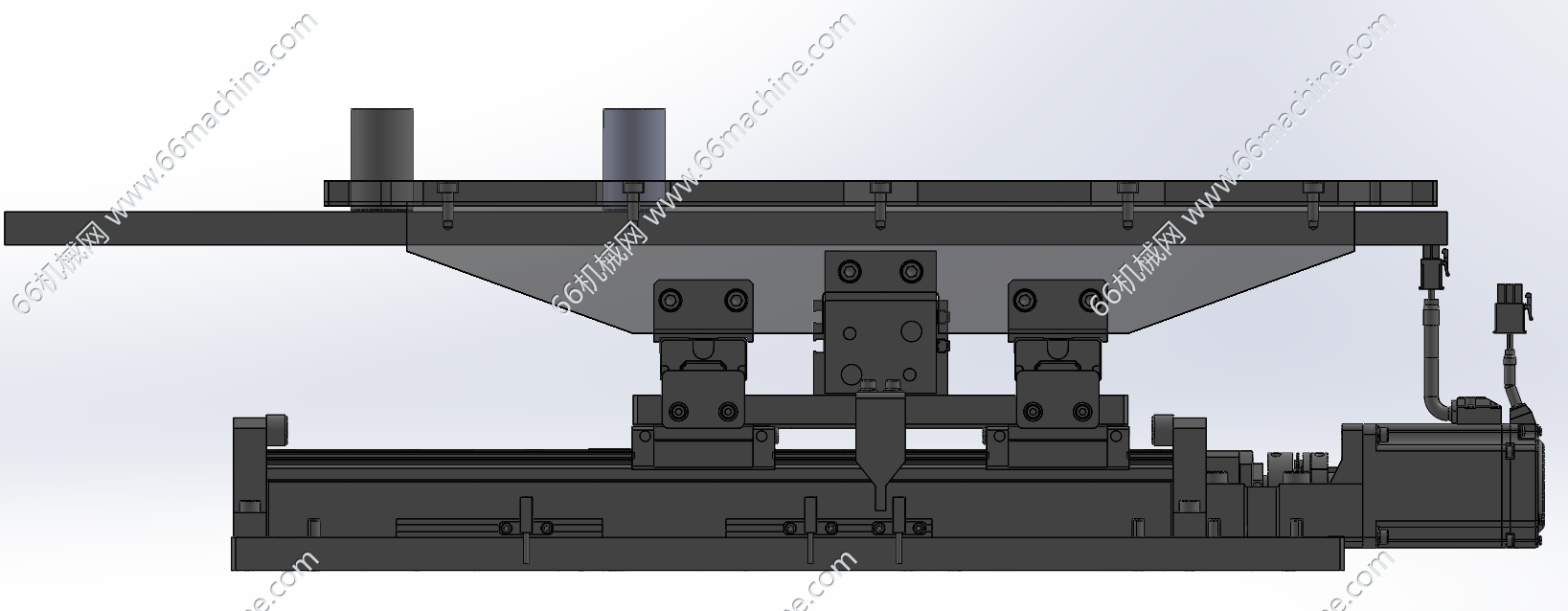 本模型为伺服等距移栽机构,常被称为定距移载机、同步移栽机构或步进移载机。其核心功能是:在连续的物料流中,以恒定的节拍和固定的移动距离,抓取或推动一个或多个工件,并将其精确地移动到下一个相邻的工位或输送带上。