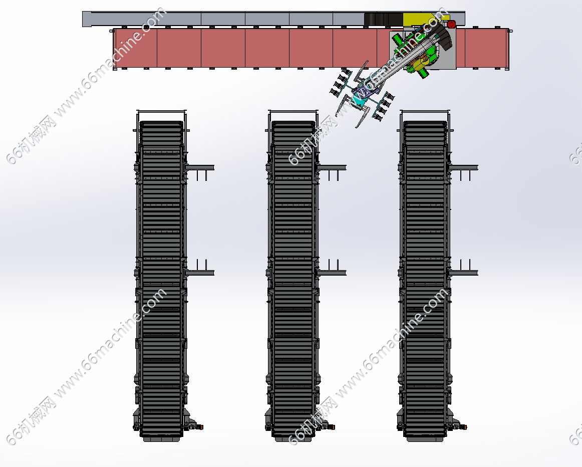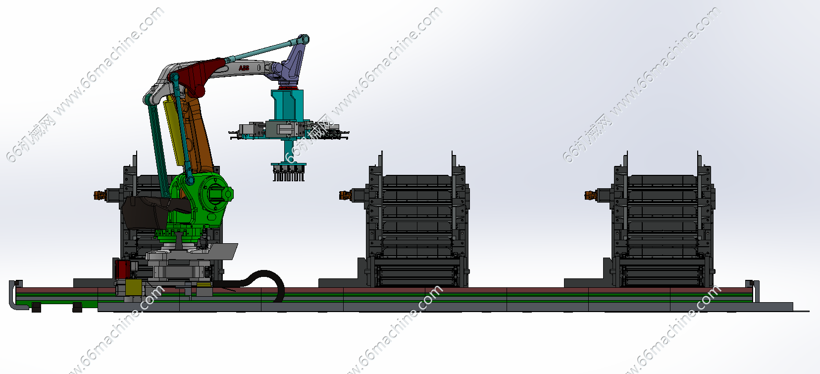 机器人在工厂使用过程中常常有需要在多个工位上做工序动作,此时机器的工作半径难以到达,机器人第七轴可以增加机器人工作半径,对三条输送机进行上下料,欢迎下载。