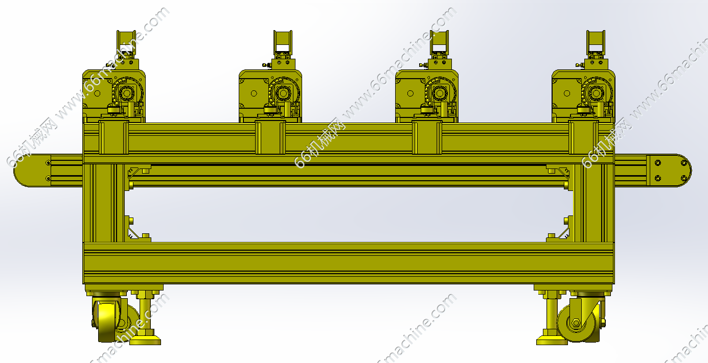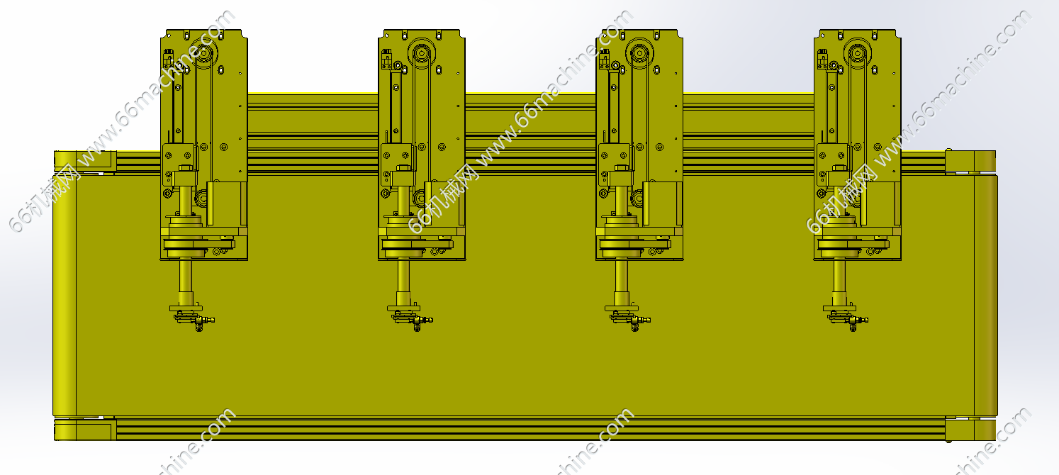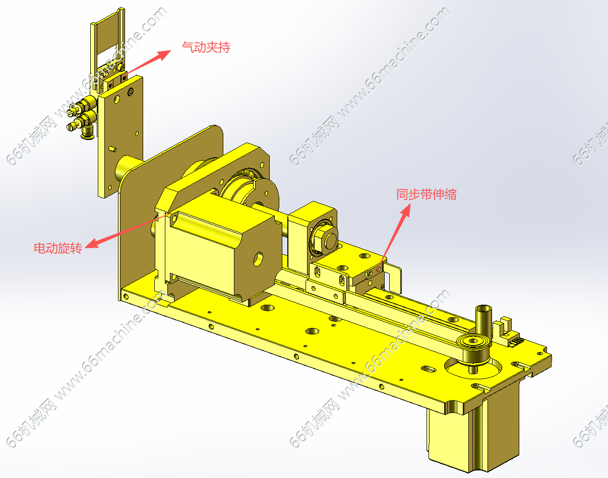 本模型为皮带线上多工位夹取移送机构(搬运移栽机构),主要由机架、皮带输送线、伸缩旋转夹持机构组成,伸缩由电机+同步带驱动,旋转也由电机驱动,欢迎参考!