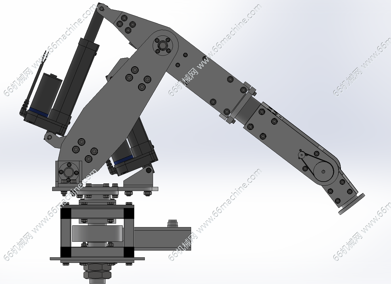 本模型为6自由度机器人手臂,拥有六个可独立运动的旋转关节。这六个关节共同构成了一个完整的空间运动链,使其末端执行器能够在三维空间内精准到达任意位置和姿态。这种高度的灵活性与拟人化运动能力,使其在焊接、装配、喷涂、检测等复杂工艺中表现出色,是实现高柔性自动化生产的核心装备。