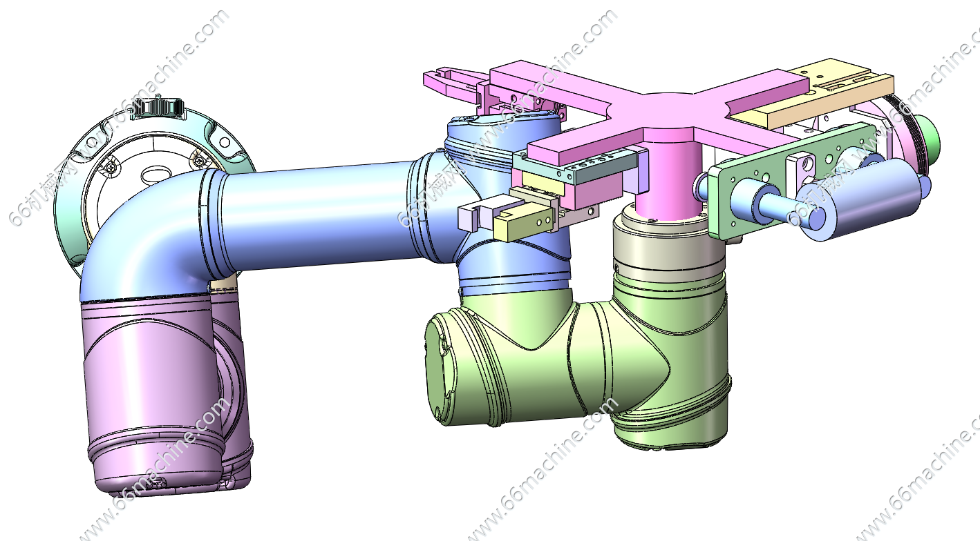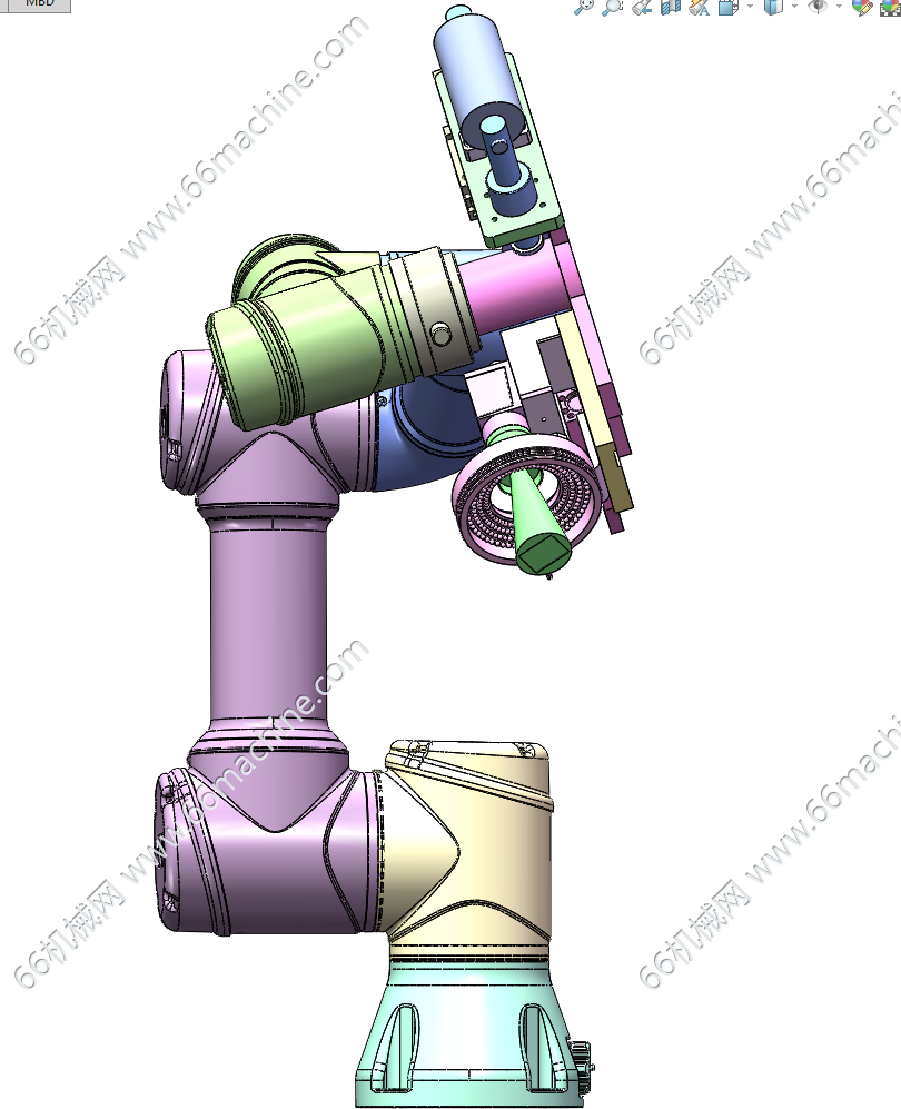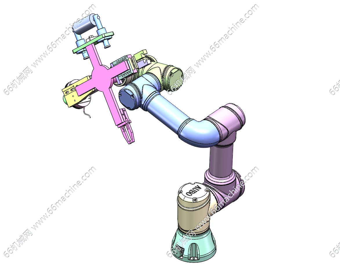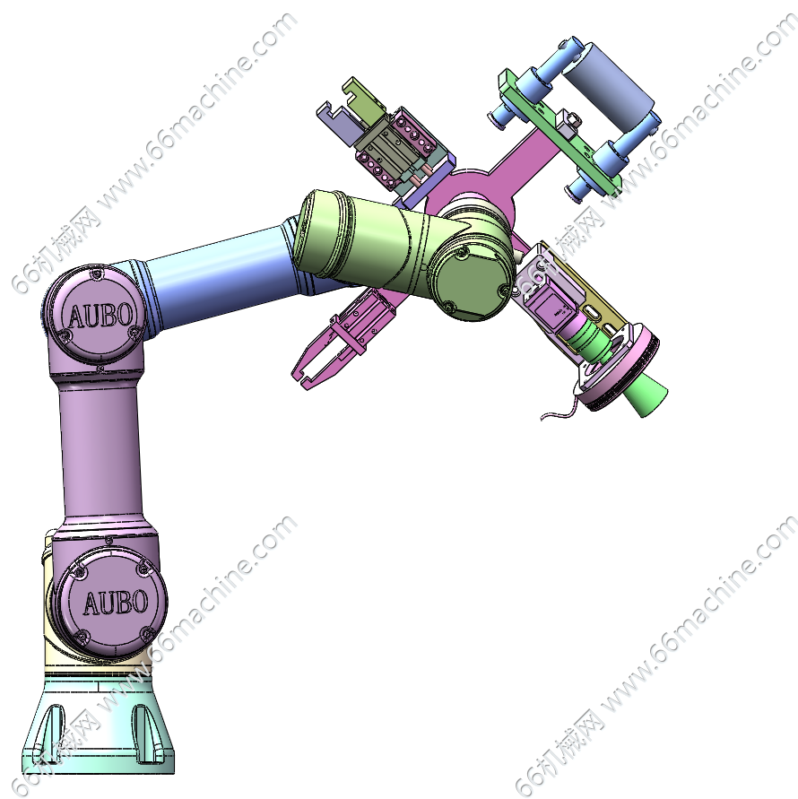 本模型为视觉引导协作机器人,包含有六个关节,各个模块可以自由移动。设备内置控制器,结构简单控制方便。设备结构轻巧,对于设备使用场地要求比较低,适用于设备上下料、辊压、质检、搬运等一系列等应用。