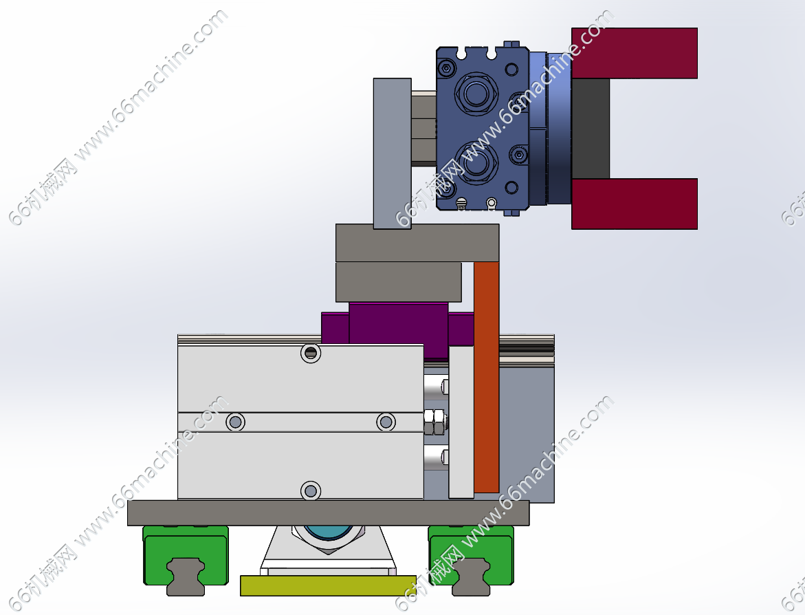 本模型为可旋转夹取搬运机构,X轴采用长行程气缸驱动沿着导轨往复动作,Y轴采用短行程气缸,R轴为摇摆(旋转)气缸,本机构用于工件的移送,欢迎参考!