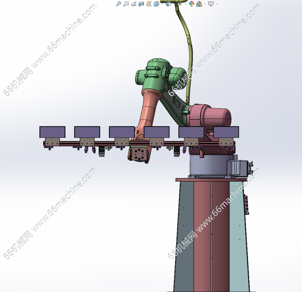 本模型为六轴机械手取料模组,采用吸咀吸取产品,可同时吸取6件产品。适用于形状规则的产品(如包装盒、片料产品),广泛用于自动化设备中物料的取放作业,欢迎下载参考!