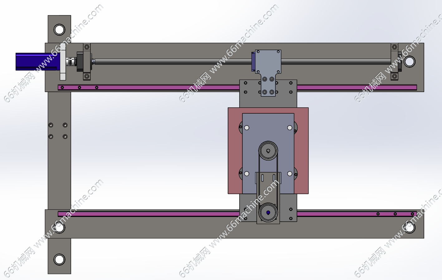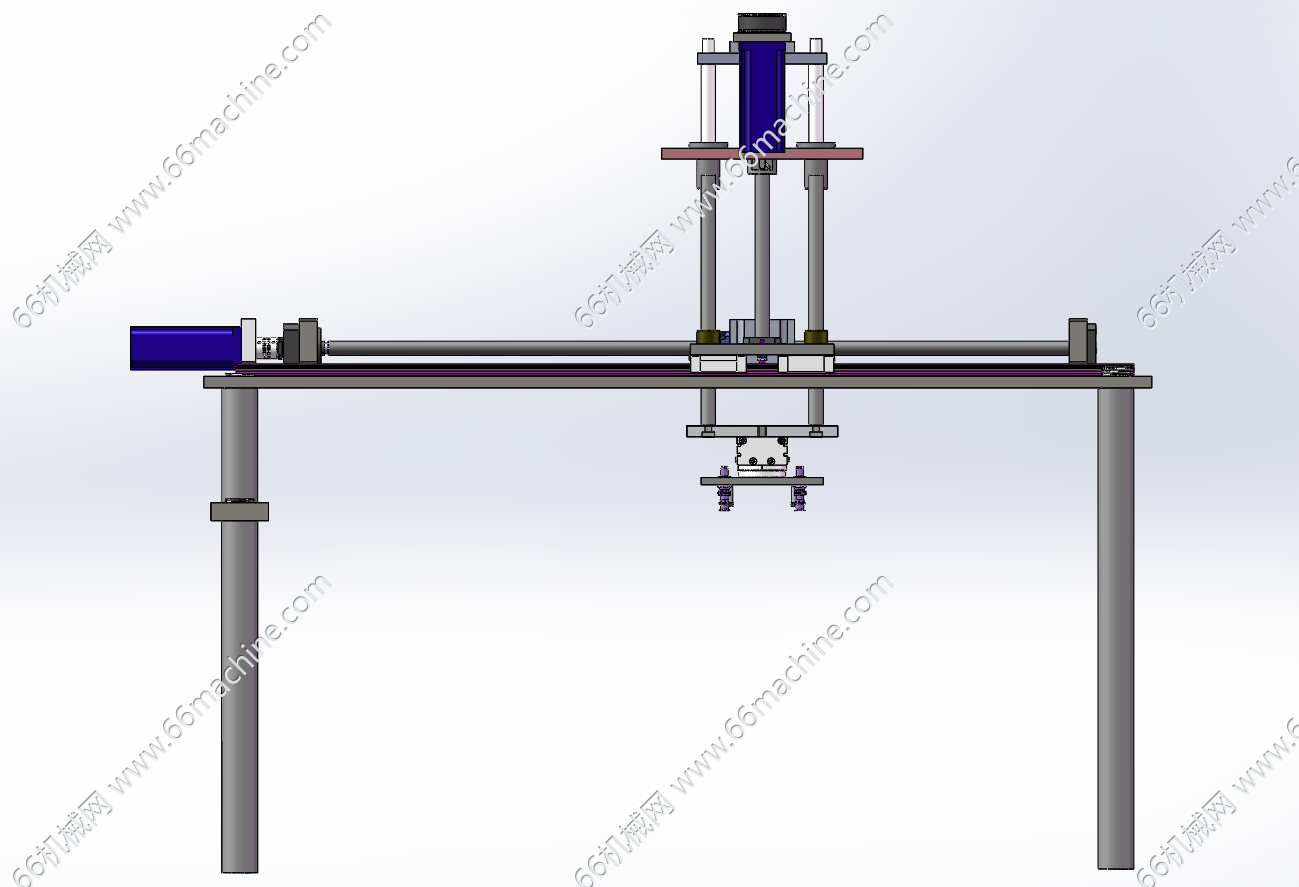本模型为板料吸取移栽机构(搬运机构),横移采用伺服丝杠模组,升降采用伺服电机经过带传动驱动丝杠实现升降,末端吸盘上设有旋转气缸。欢迎下载参考!
