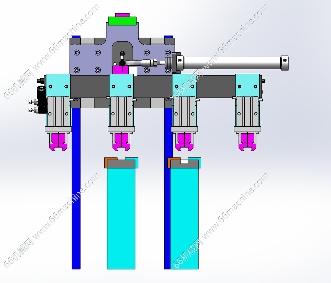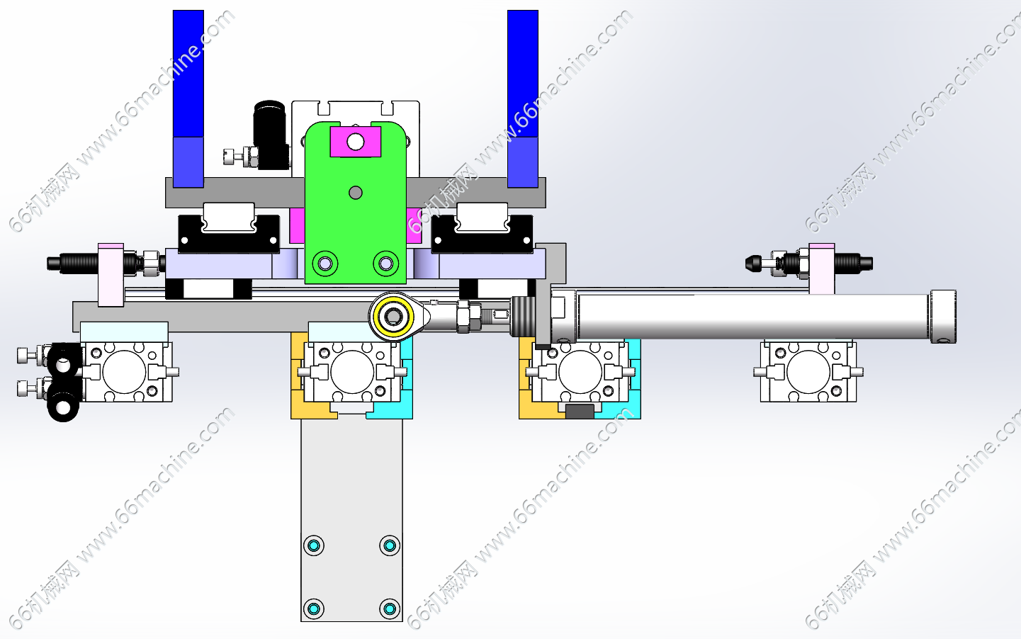 本机构为气动夹取移送机构,气缸驱动横移,此机构以实际批量用过,机构稳定性高,适合3C小产品取放检测,通用性强,可适当更改中心间距,可直接调用。