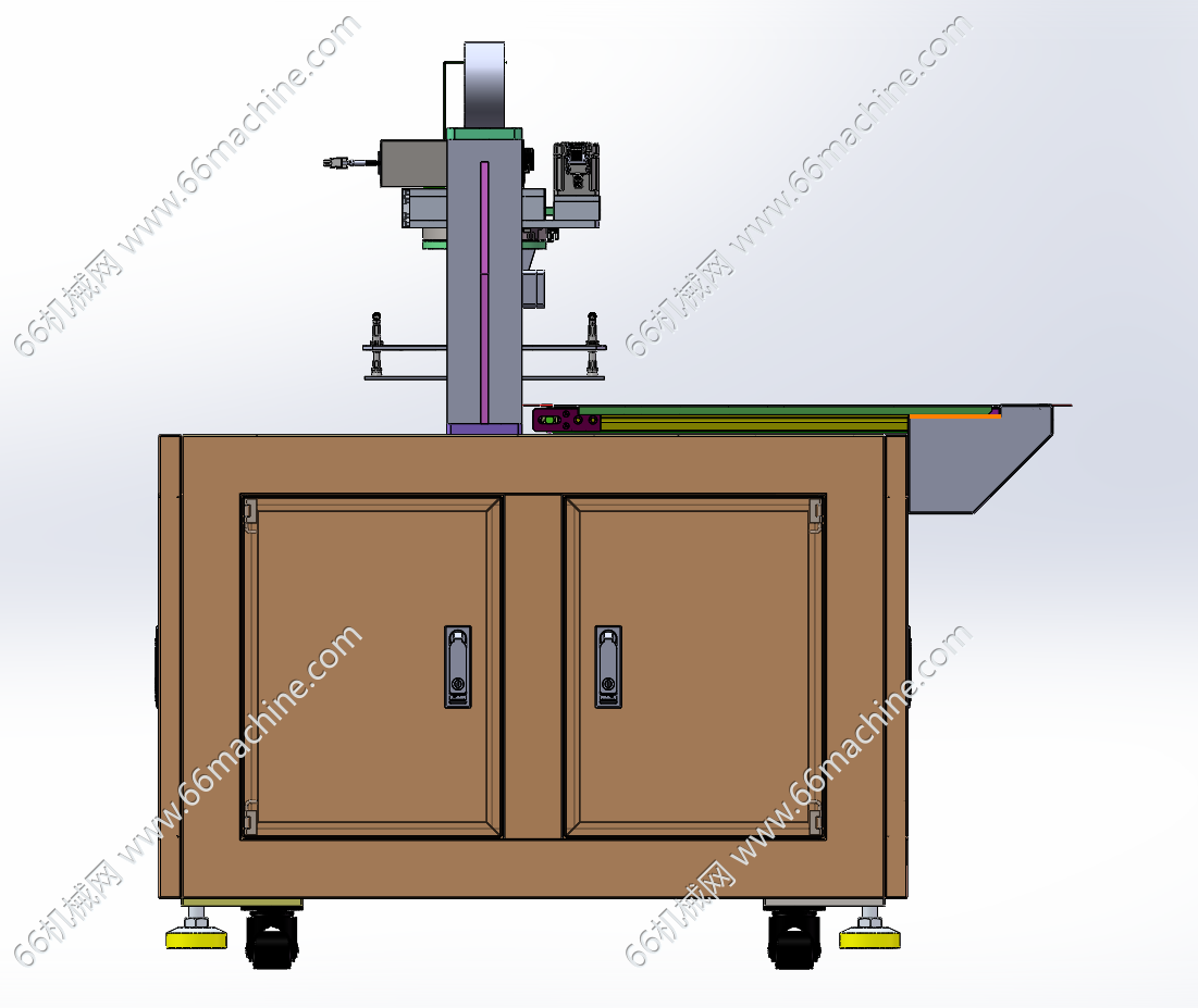 本模型为通用型搬运旋转换向机,通过皮带机输送物料,搬运机构把物料吸取旋转方向换向放回输出。通用皮带机是所有的需要皮带运输的设备都可以增加的一款皮带机,这个相当于标准机,只要增加对应的固定立脚站稳就行。