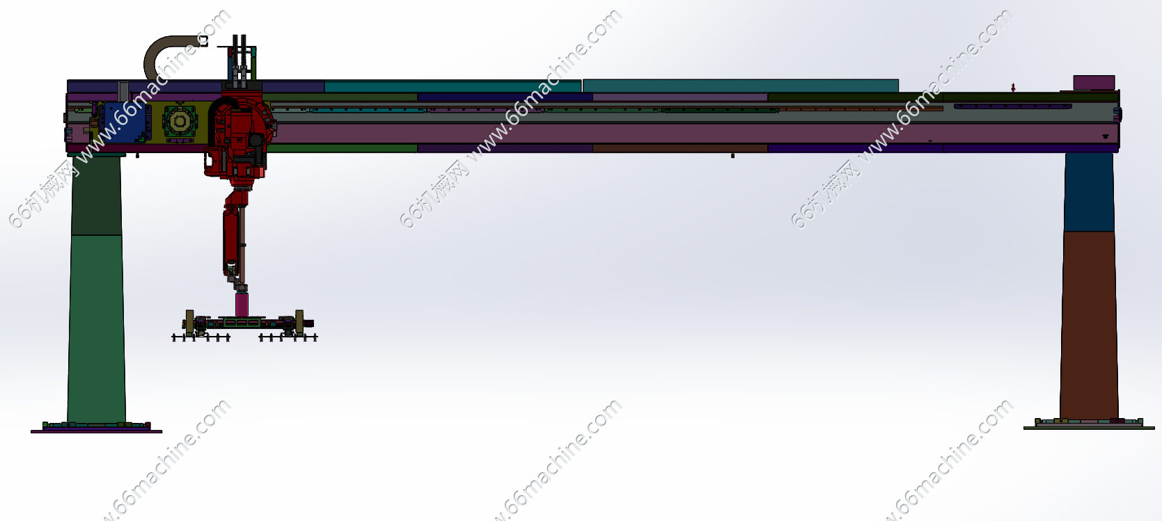 本模型为吸取搬运天轨机器人,搭载真空吸盘装置、沿高架轨道(天轨)运行的自动化搬运设备,核心价值是释放地面空间、适配多场景高速精准搬运,广泛用于电子、汽车、仓储等行业。