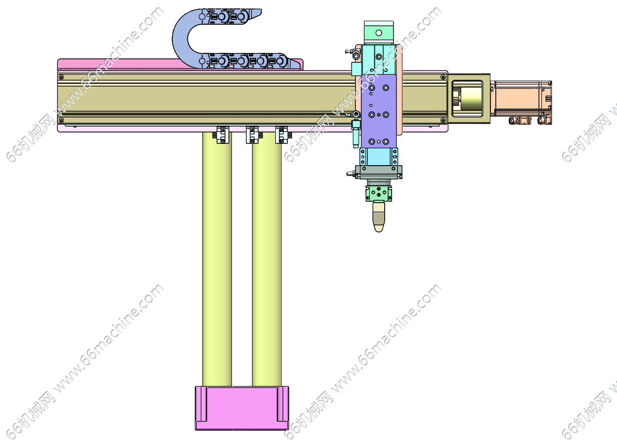 本模型为三轴夹取移送模组(夹持搬运模组),X轴采用伺服电机+丝杠模组实现往复直线动作;Z轴采用气缸动作;R轴采用旋转气缸,末端设有气动夹爪,欢迎参考!