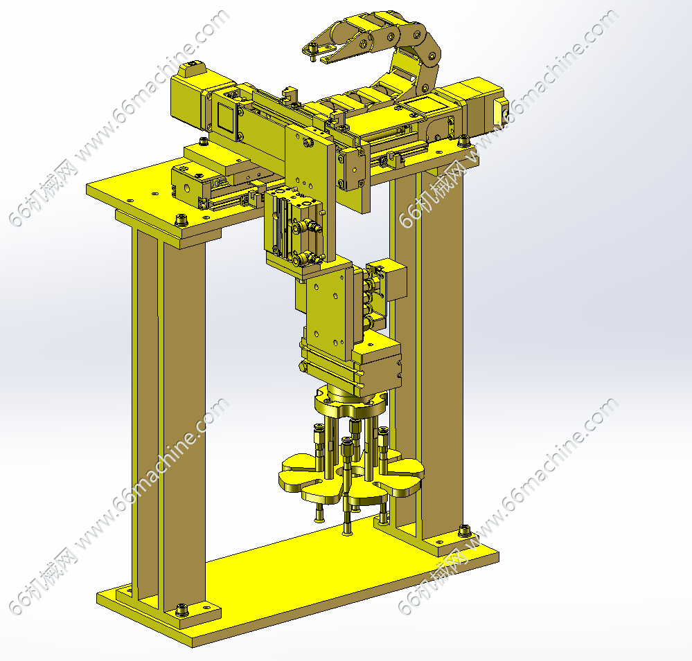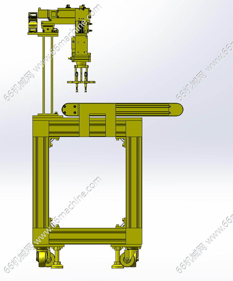 本模型为皮带线上吸取移栽机构,主要由机架、吸取移栽机构及皮带输送线组成,吸取移栽机构包含XYZ轴及R轴(旋转轴),通过负压吸嘴吸取产品,多用于片状产品的上下料,欢迎下载参考!