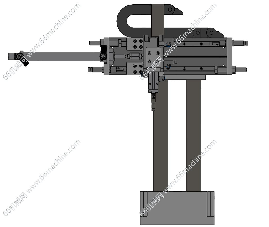 本模型为夹取搬运机构(移栽机构),采用气缸驱动沿着导轨横移,末端执行器为气动夹爪,将物料从一个固定位置抓取、平移、然后精确放置到另一个固定位置。广泛用于自动化上下料场景中,欢迎参考!