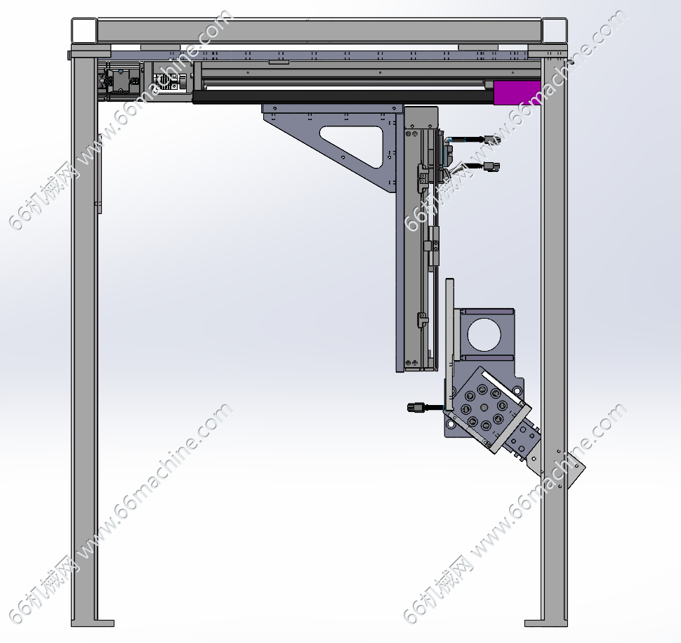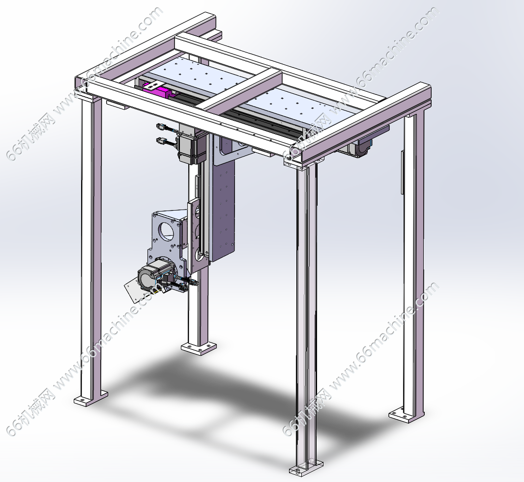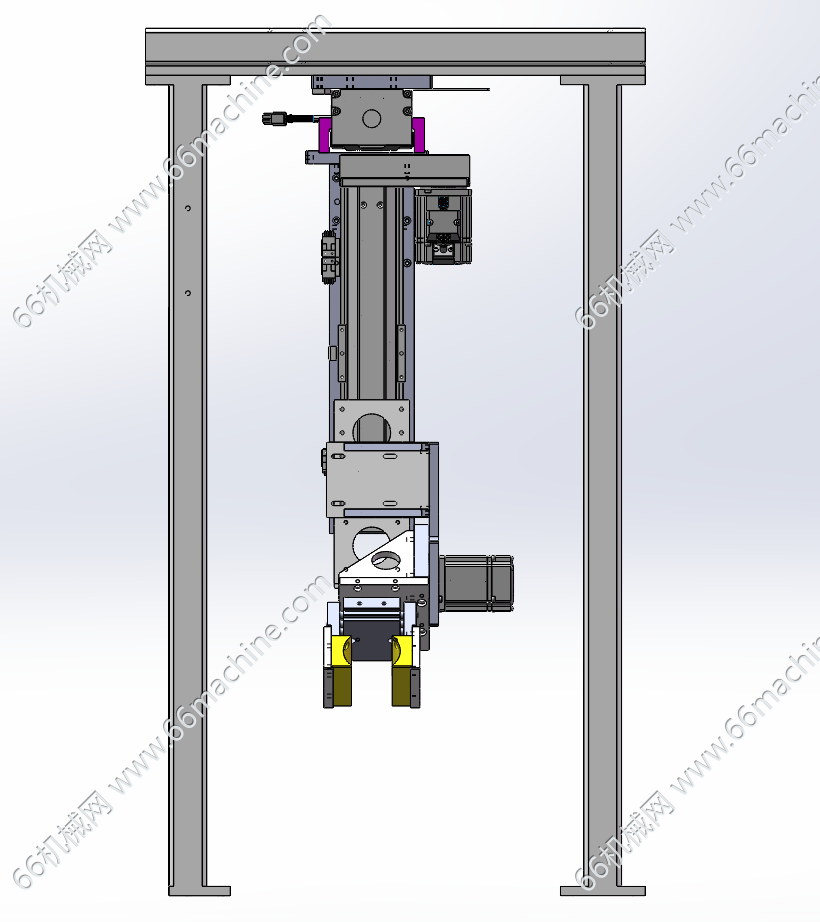 本模型为三轴龙门夹取移送机械手(又称移栽机、搬运机),包含X、Z直线轴及R旋转轴,XZ轴均匀伺服直线模组,R轴采用电机驱动旋转,末端采用气动夹爪,欢迎参考!