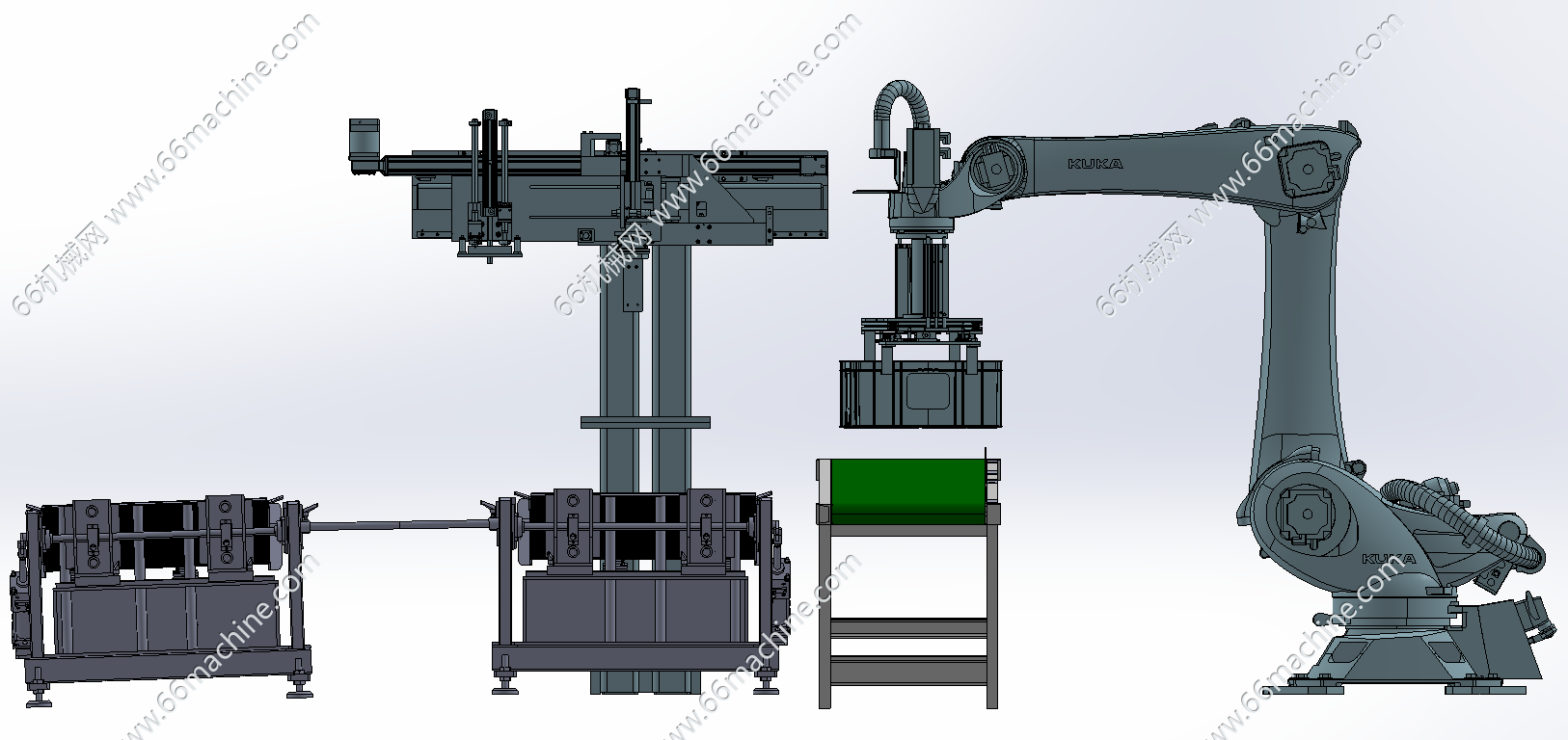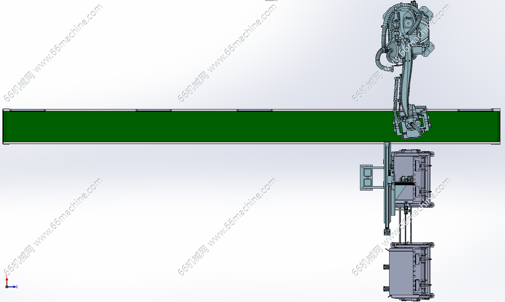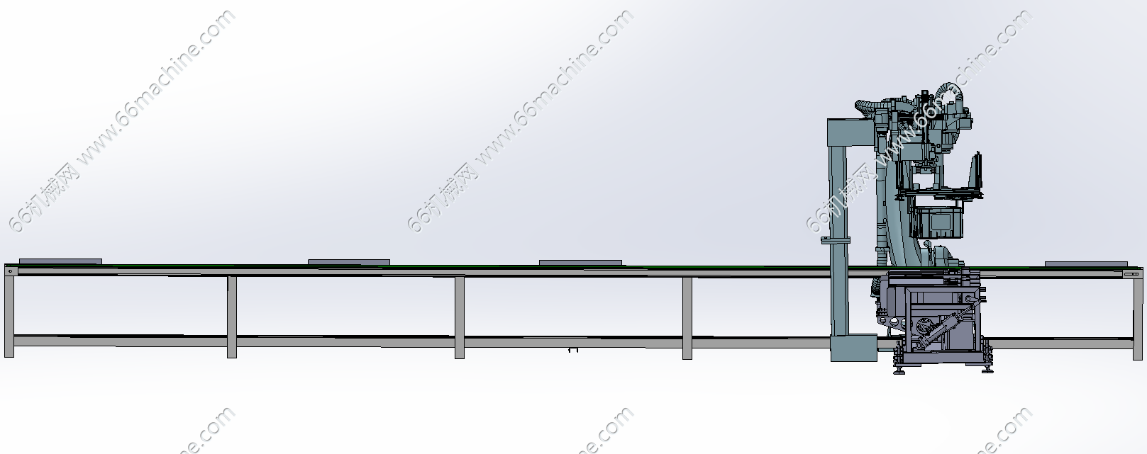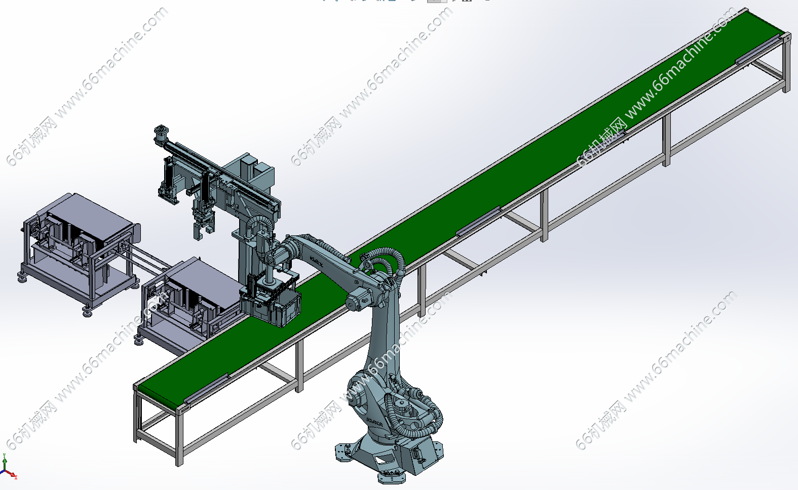 本模型为基于机器人的分拣线,主要由皮带输送线、六轴分拣机器人、三轴夹取移栽机构组成,六轴分拣机器人适用于各种产品的分拣或自动上下料作业,欢迎参考!