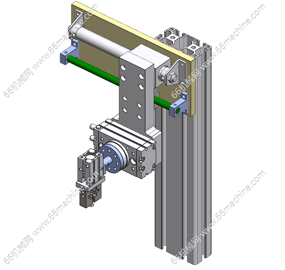 本模型为旋转横移夹取机械手,横移采用无杆气缸,旋转气缸(摆动气缸)可实现末端夹爪的0-180°/360°旋转,用于工件的姿态调整,广泛用于3C电子、自动化生产线的上下料及搬运工位。
