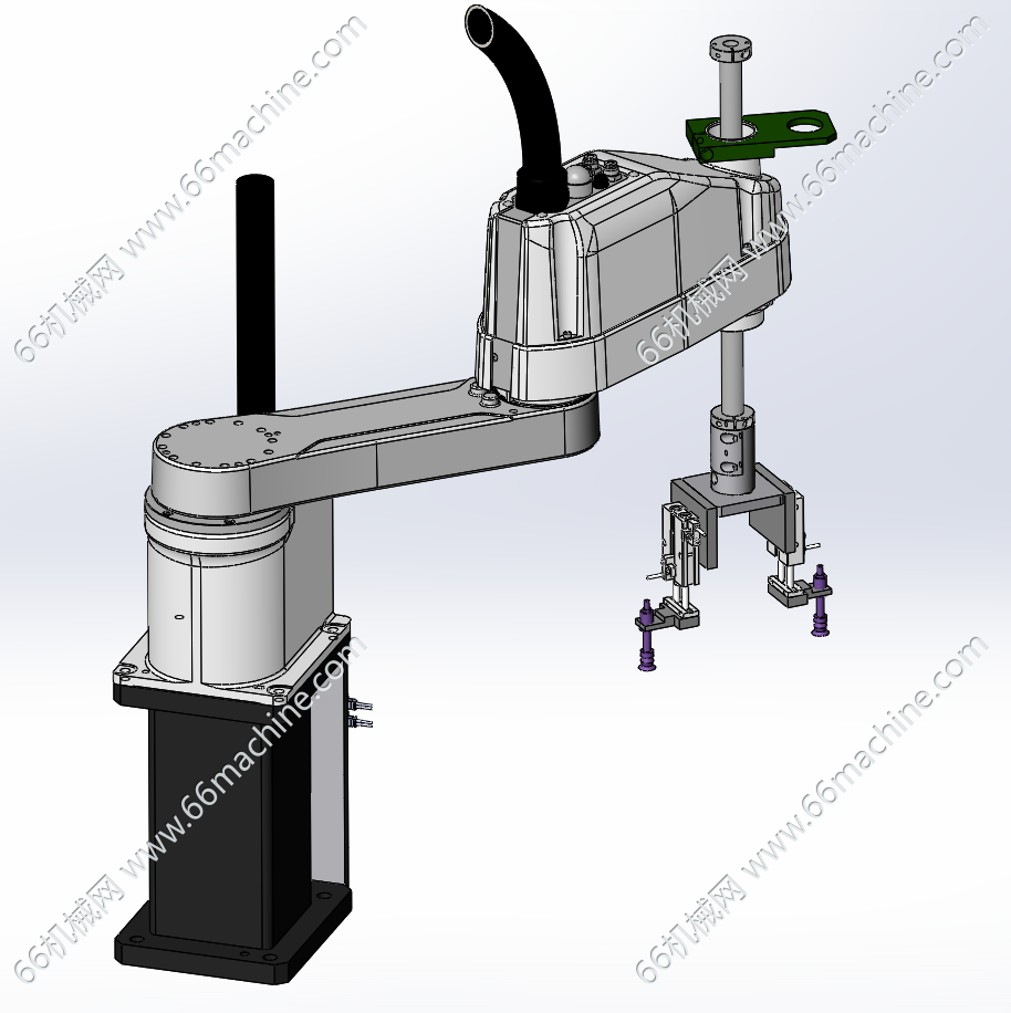 本模型为吸取式四轴机器人,采用SCARA水平四轴结构+真空吸取末端,主打平面内高速、高精度、无接触抓取,是电子、半导体、食品、包装等行业自动化产线的主流方案。
