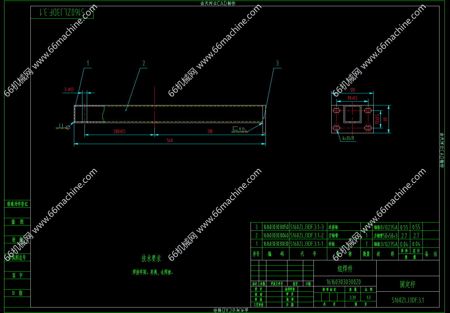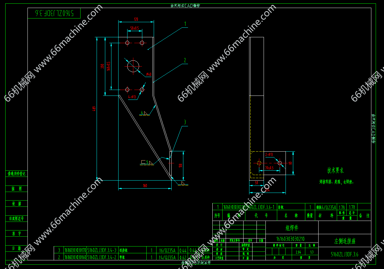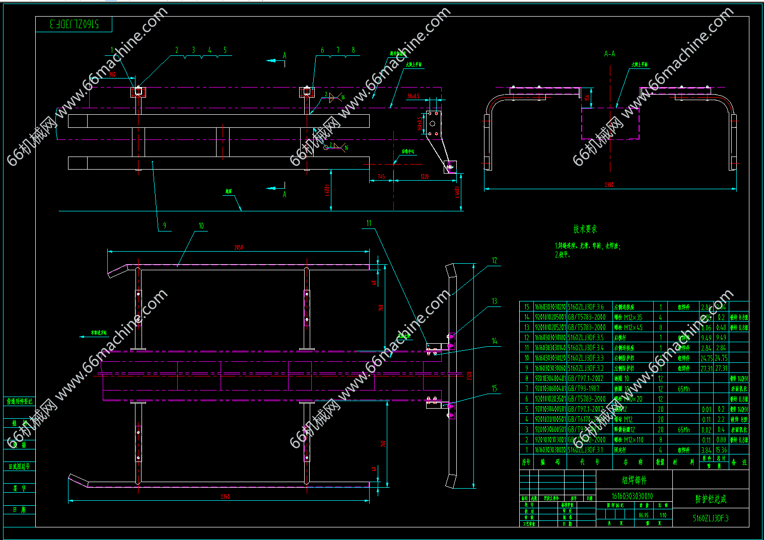 本图纸为5160ZLJ3DF自卸式垃圾车防护栏,由挡泥板、压板等组成。挡泥罩钻有调节板连接孔和固定孔,可调整高度;压板配孔,保证安装后挡泥板上企业标志朝后。车辆行驶时,它能阻挡车轮溅起的泥水、杂物,保持车身清洁,且安装牢固、装配美观,为行车安全助力。
