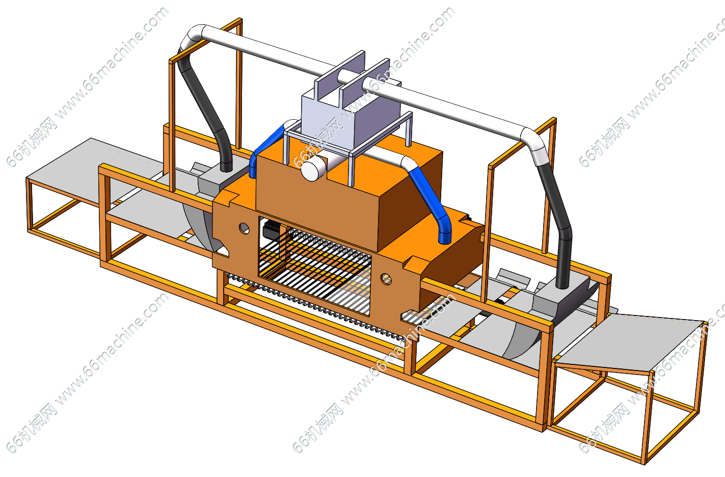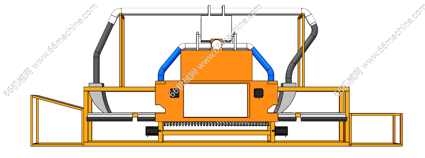 本模型为连续式网带烘干机,内部集成加热组件,顶部配置热风循环风机与多组管路,通过热风循环对腔体内物料进行均匀加热,同时排出湿气与废气,广泛应用于食品、化工、五金、木材等行业的物料烘干、固化或热处理工序。