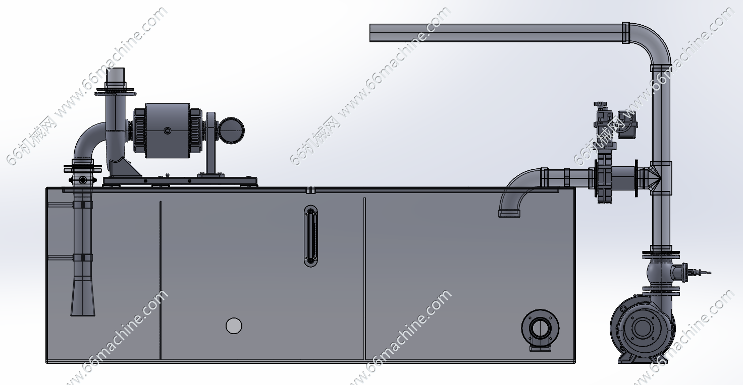 本模型为鱼池循环水过滤装置,属水产养殖设备技术领域。包括方形箱体,内部设进液、沉淀、过滤三槽;进液槽顶部装旋流分离器,隔板设一级过滤网,底部设排污管;沉淀槽通过抽水泵与过滤槽连通,过滤槽内置可抽拉的渗透过滤组件,含二级过滤网、V形导流板、渗透膜、活性炭及节流组件。装置通过旋流分离、沉淀及多级过滤协同净化,解决现有装置过滤层级少、维护难、流场不均问题,实现高效固废拦截、有机物吸附及微生物截留,保障苗种池水质稳定,提升养殖效益。
