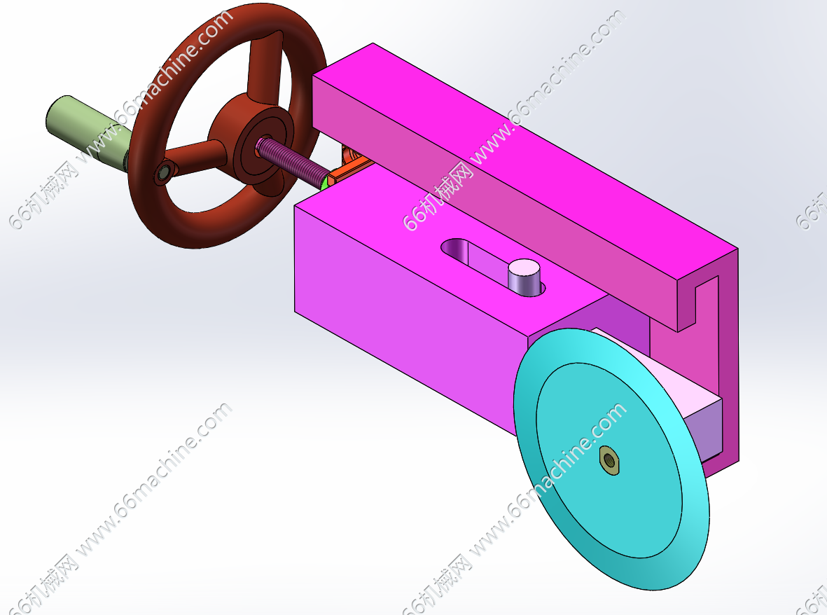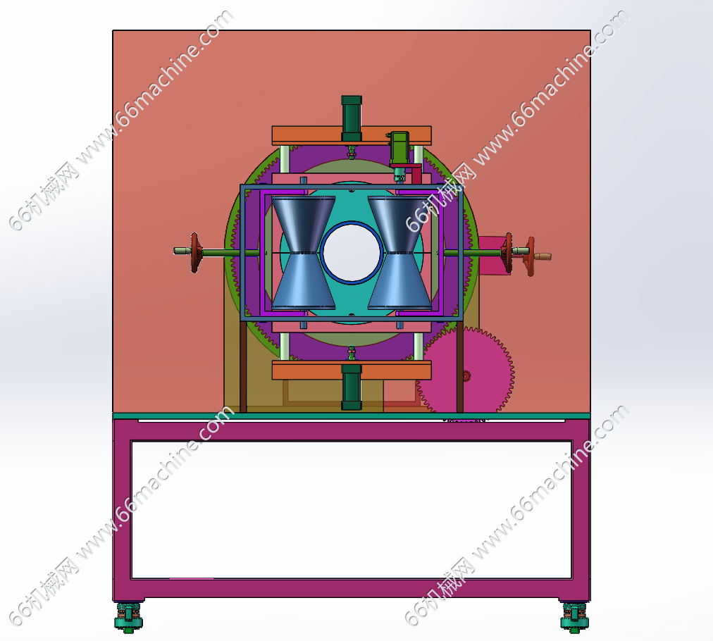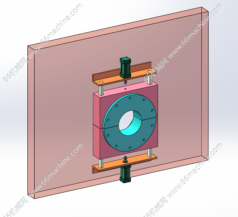 本模型为环形切割机,主要由机架、气动夹紧机构、送料模组、切刀模组等组成,采用电机驱动大齿轮盘旋转进而实现环切,旋转刀片式无屑切割机,切口平整光滑无毛屑,可对PPR、PE塑料等管材进行切割作业。