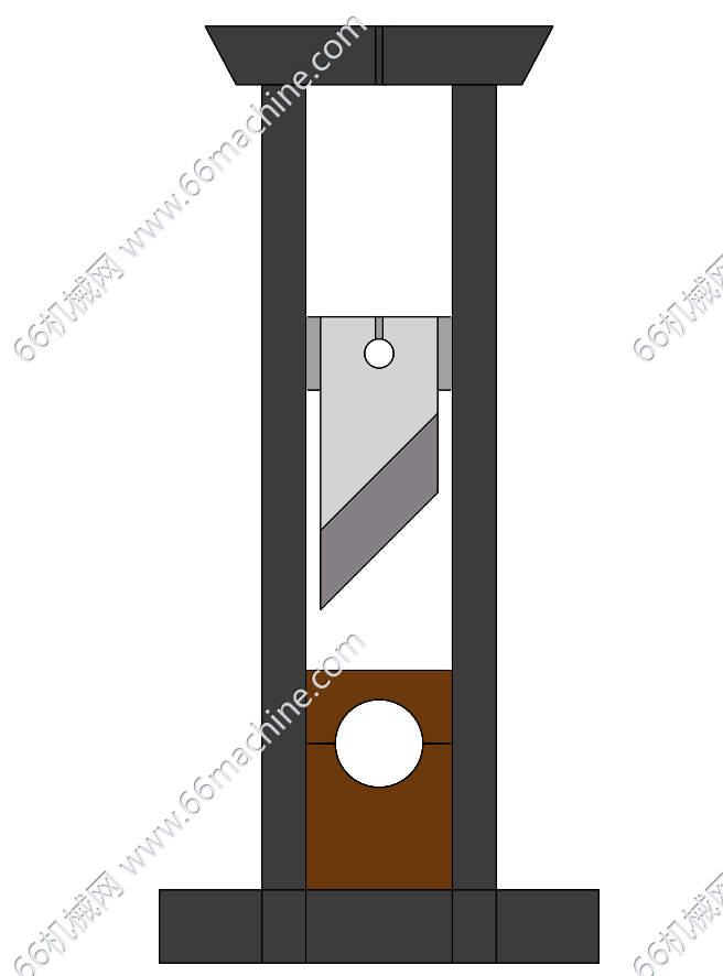 本模型为自重切割台,利用自重实现切刀的切割,为一执行死刑之器具,用以将犯人的头斩去。在法国废除死刑前,以断头台斩首是该国执行死刑之唯一合法方式。