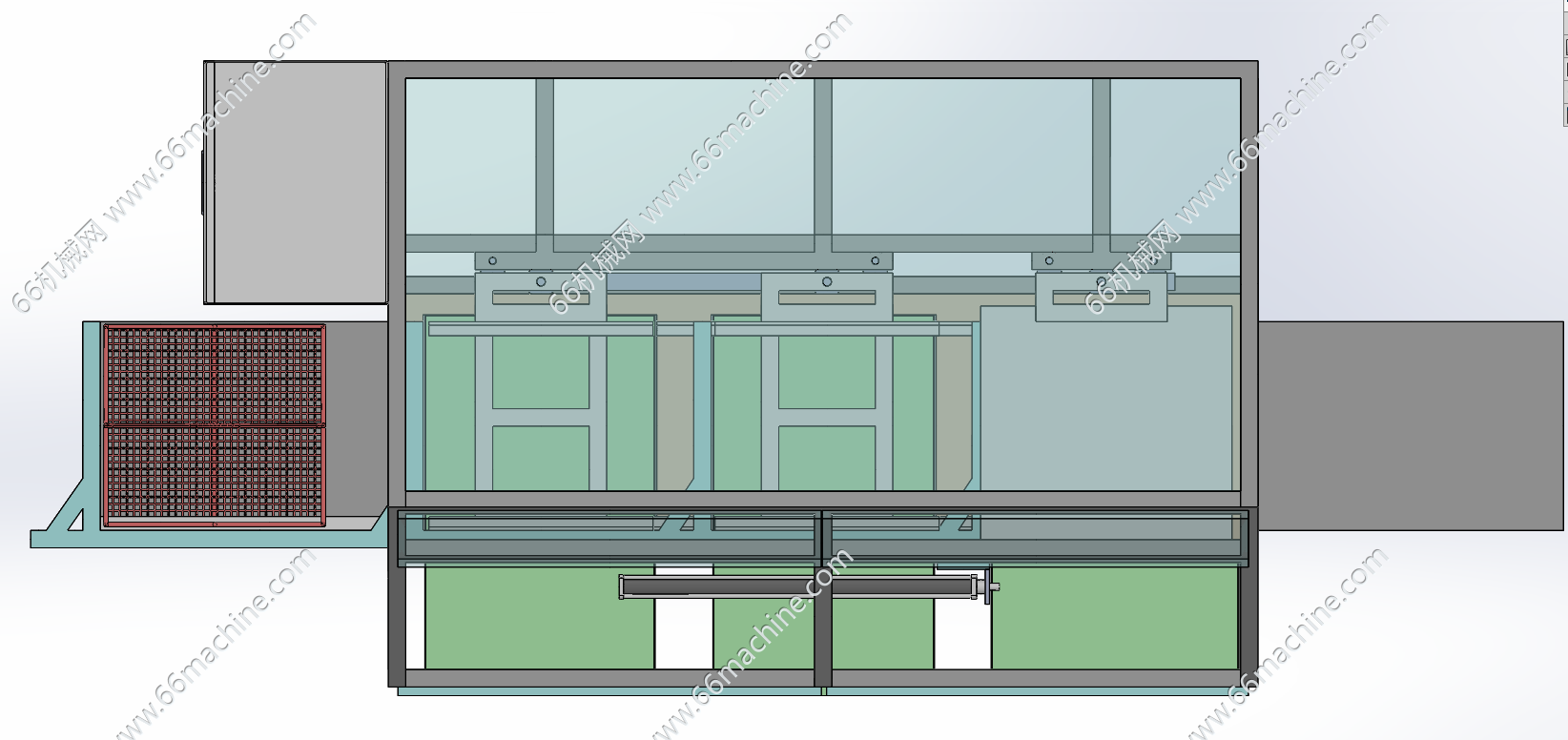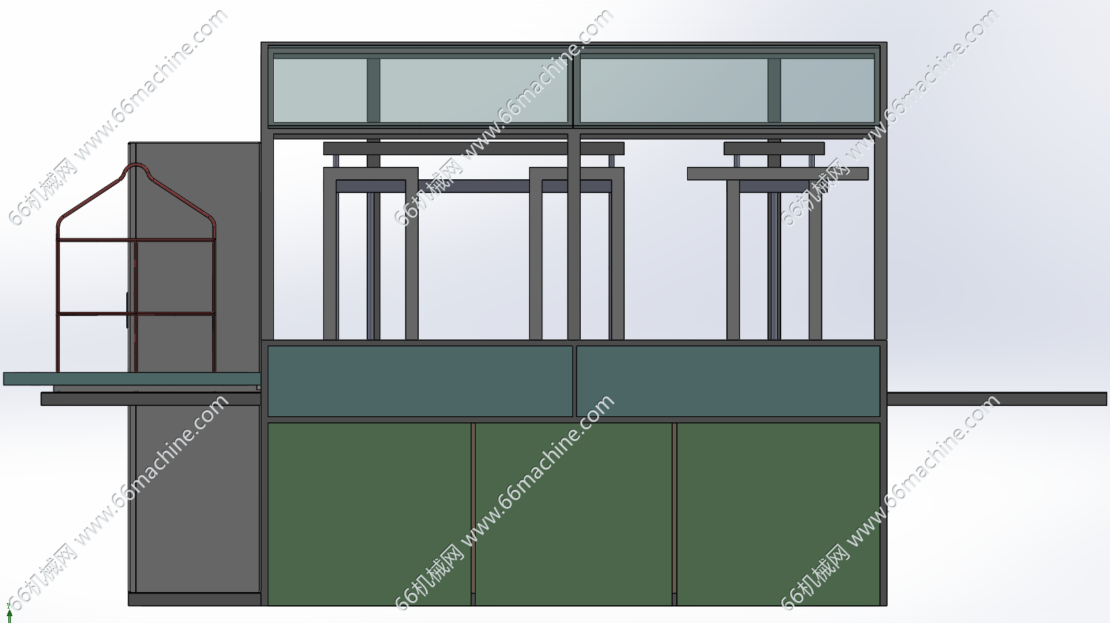 本模型为化学沉金表面处理设备,设有电控柜、多个药水槽、产品吊篮、气动升降装置等组成,产品(如五金件、PCB板等)放入吊篮后依次浸入各种药水槽进行表面沉金处理,欢迎参考!