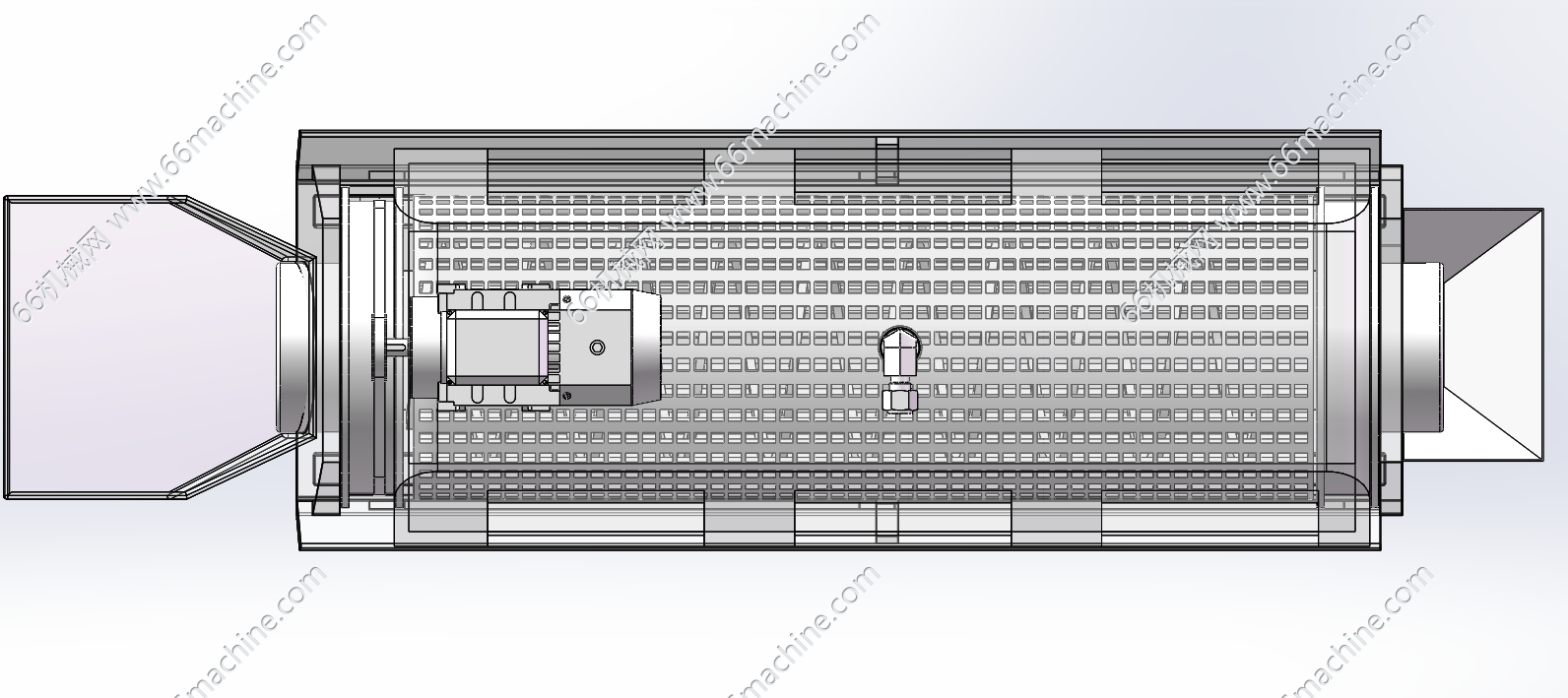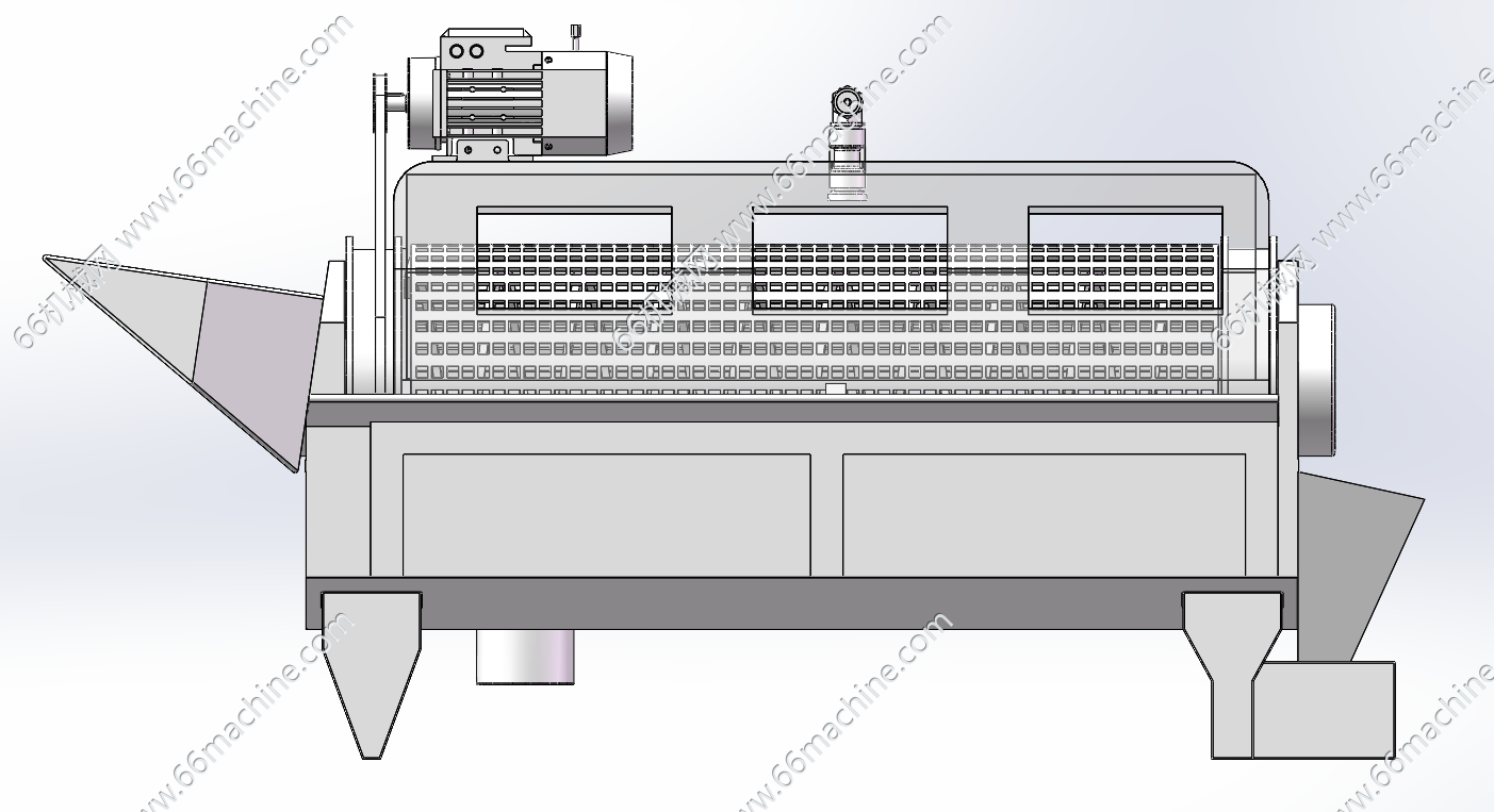 本模型为土豆、萝卜等通用型滚筒清洗机,采用伺服电机经过带传动驱动滚筒旋转,可调转速及正反转,顶部设有高压水喷淋。适用于水果、农作物(如土豆、萝卜等)的清洗,通用性强,欢迎下载参考!