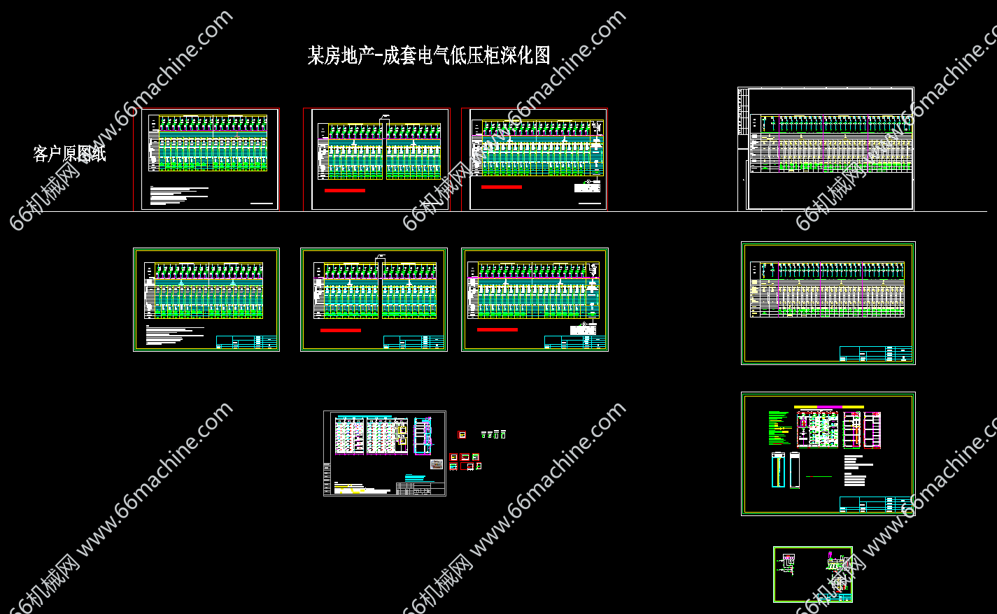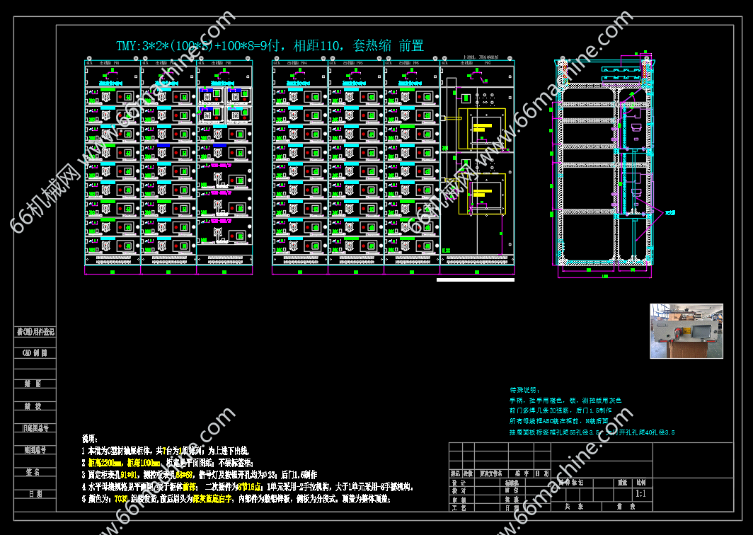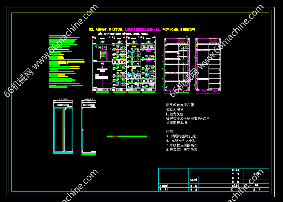 本套图纸根据客户的原图纸,按对应的开关品牌排布,设计出配电箱箱体图,供钣金厂生产箱子用。图纸包含进线柜、出线柜、等等。原理图包括框架原理图、抽屉原理图等,欢迎参考!