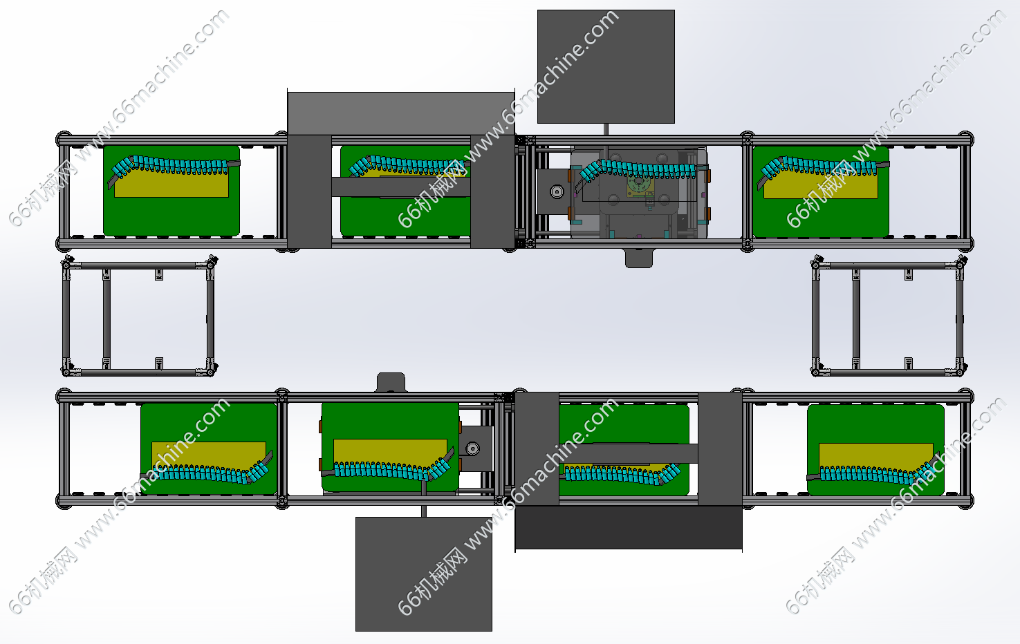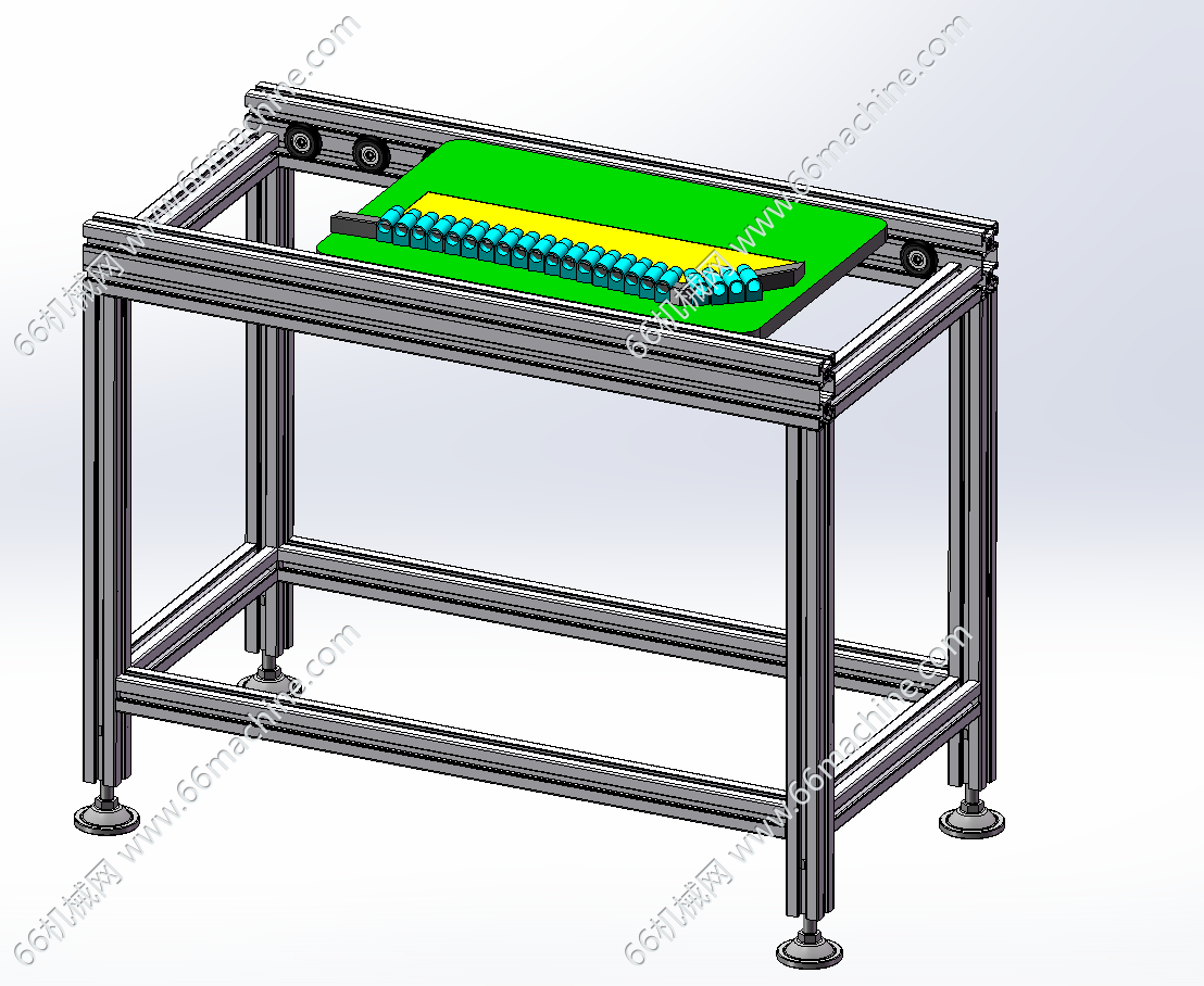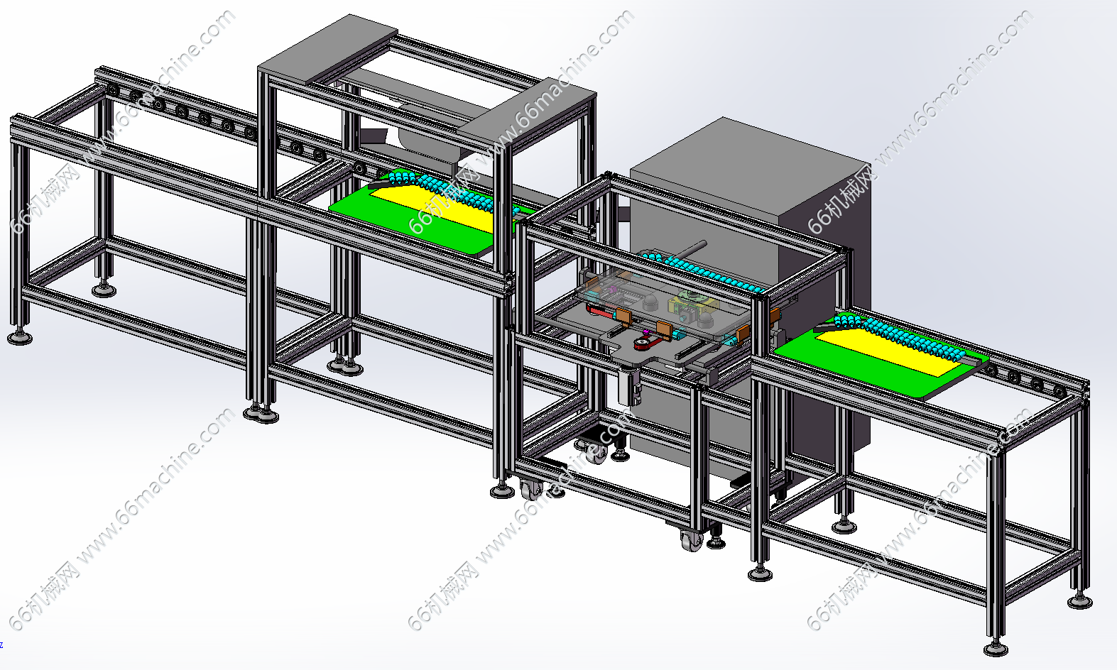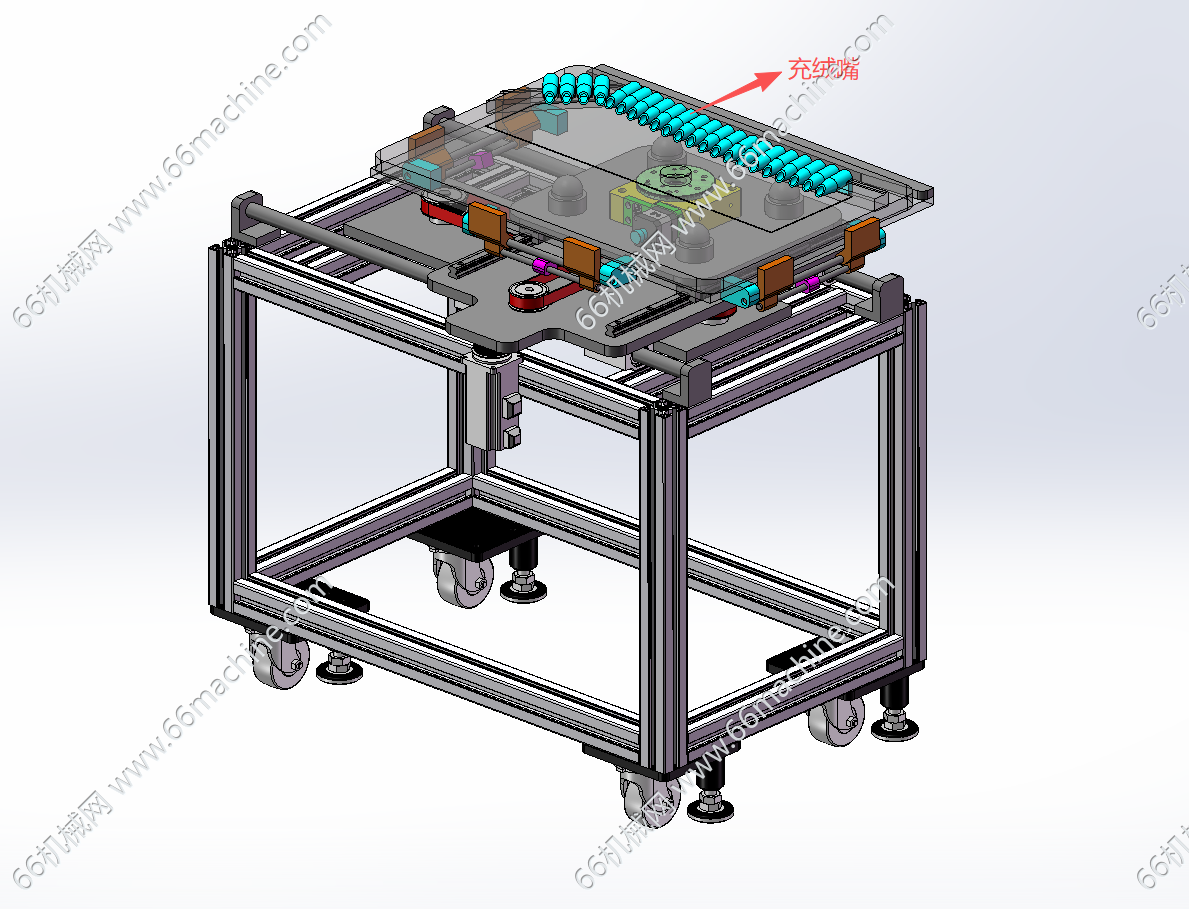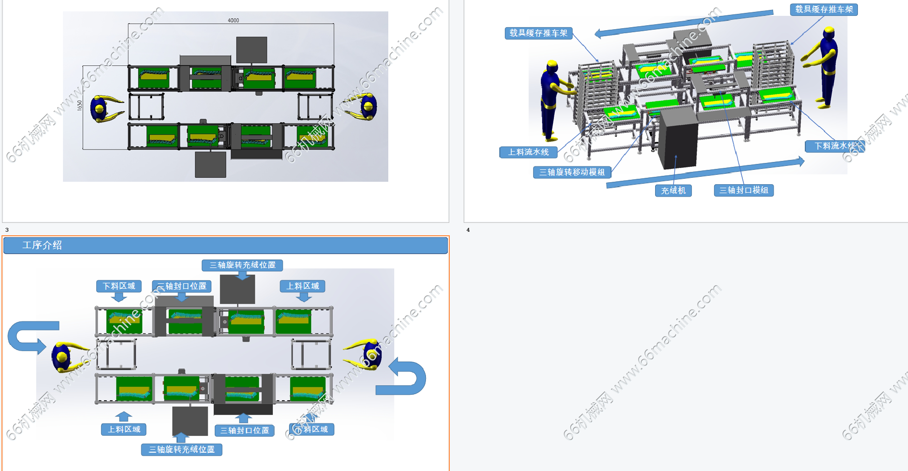 本模型为充绒线,主要由货架、上料位、XYR三轴旋转充绒位、封口位及下料位等组成,采用双线布局,人工操作,主要用于抱枕、娃娃、羽绒服、羽绒被等充绒作业,广泛用于服装行业!