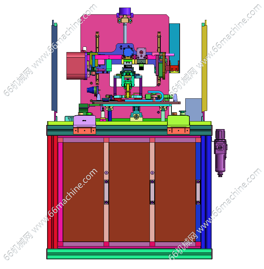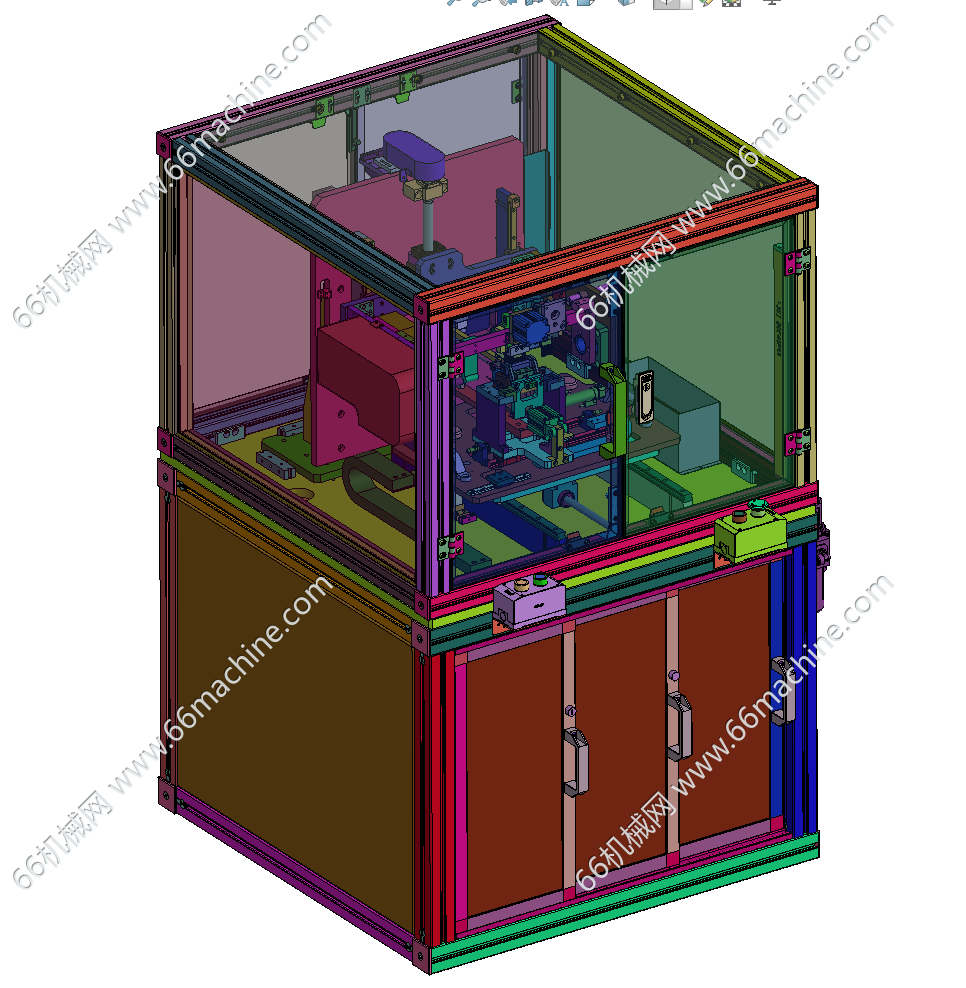 本模型为某企业插头针脚折弯机,主要由下机架、机罩、伺服丝杠下压折弯模组及可移动插头定位工装组成,插头采用人工上料至定位工装,自动进行折弯作业!