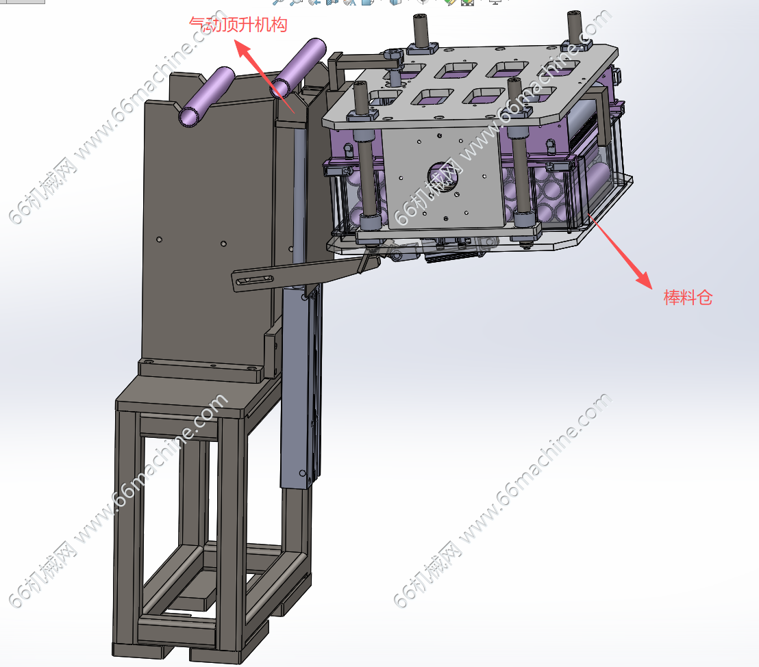 本模型为圆柱形棒料上料机构,专门用于定向堆放的圆柱形棒料(如金属棒、塑料管、轴类零件)进行自动排序、分离、定向并稳定输送至下工位的专用设备,欢迎参考!