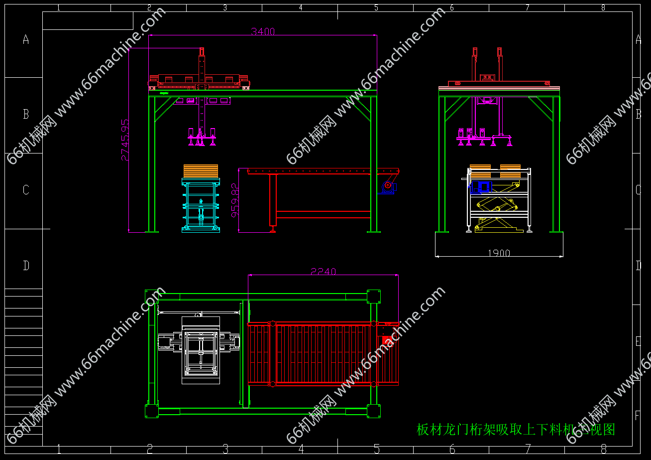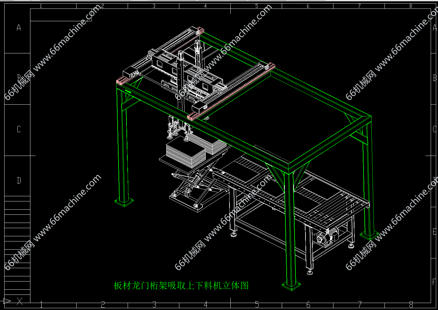 本套图纸为板材龙门桁架吸取上下料机,主要由三轴真空吸附机构、剪叉式升降机及滚筒输送线组成,三轴机构实现快速精准移动,适用于板料的自动上下,欢迎下载参考!