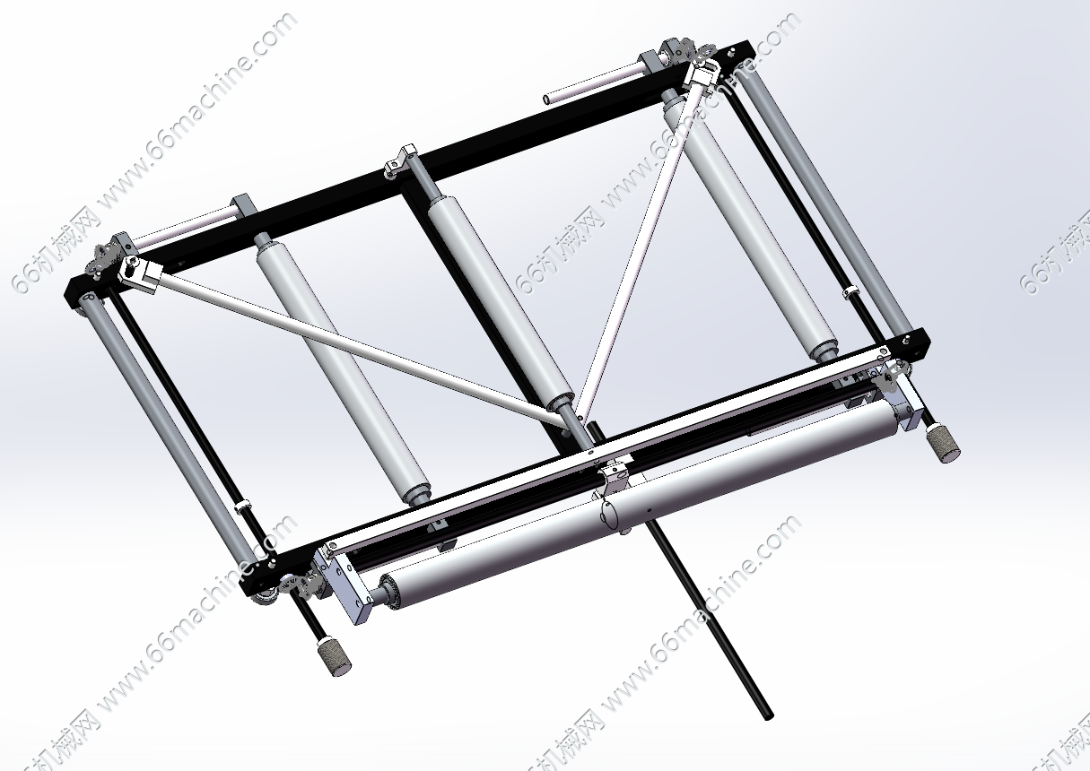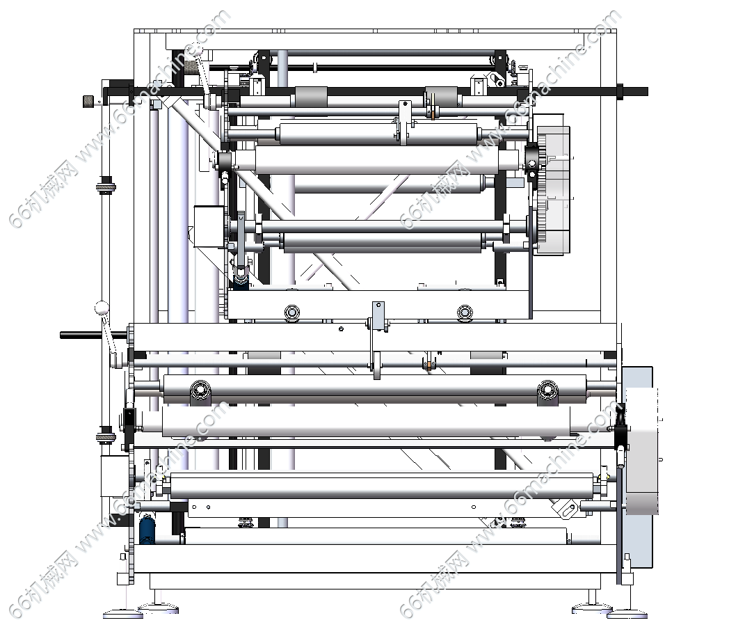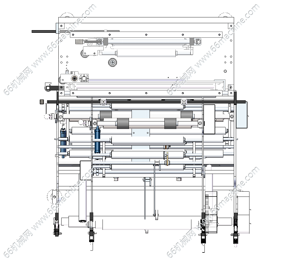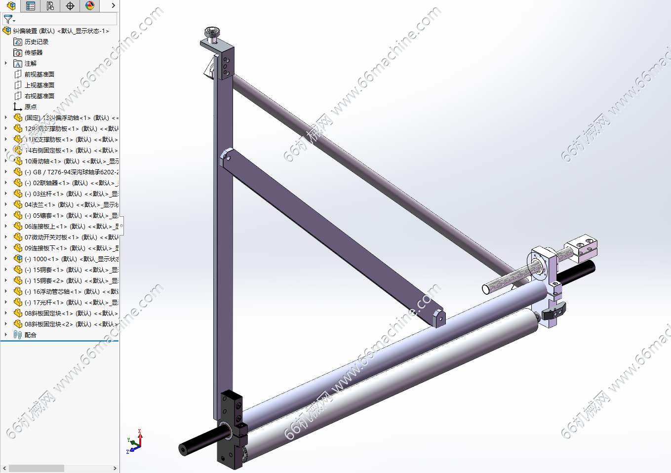 本模型为带纠偏及交替上料的制袋机放料段,包含机架、放卷上装置、左右摆主体、压辊装置、纠偏装置等,用于制袋机原材料(薄膜或布料卷)的自动供料,欢迎参考!